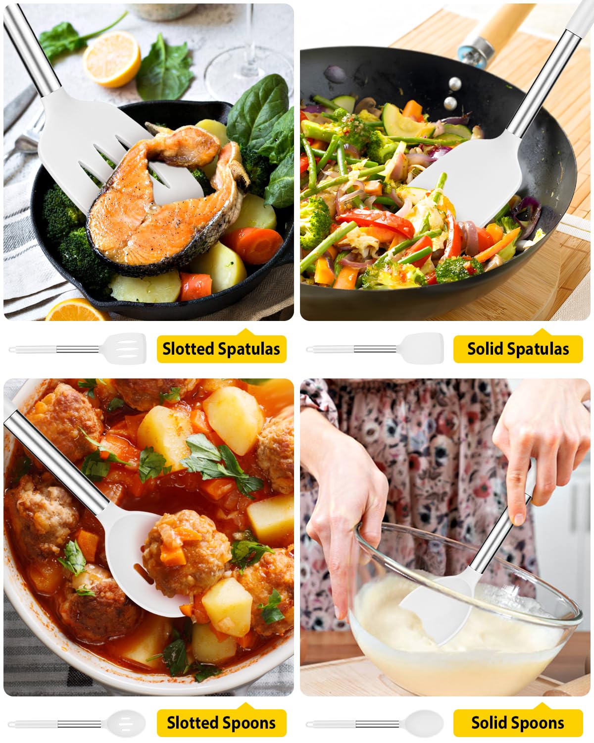 More Safe and Healthy : Our cooking utensil sets are made of food-grade silicone, free of BPA;Even at high temperatures, there is no need to worry about melting or deforming;And the soft silicone head won't scratch the coating, it can better protect your pot