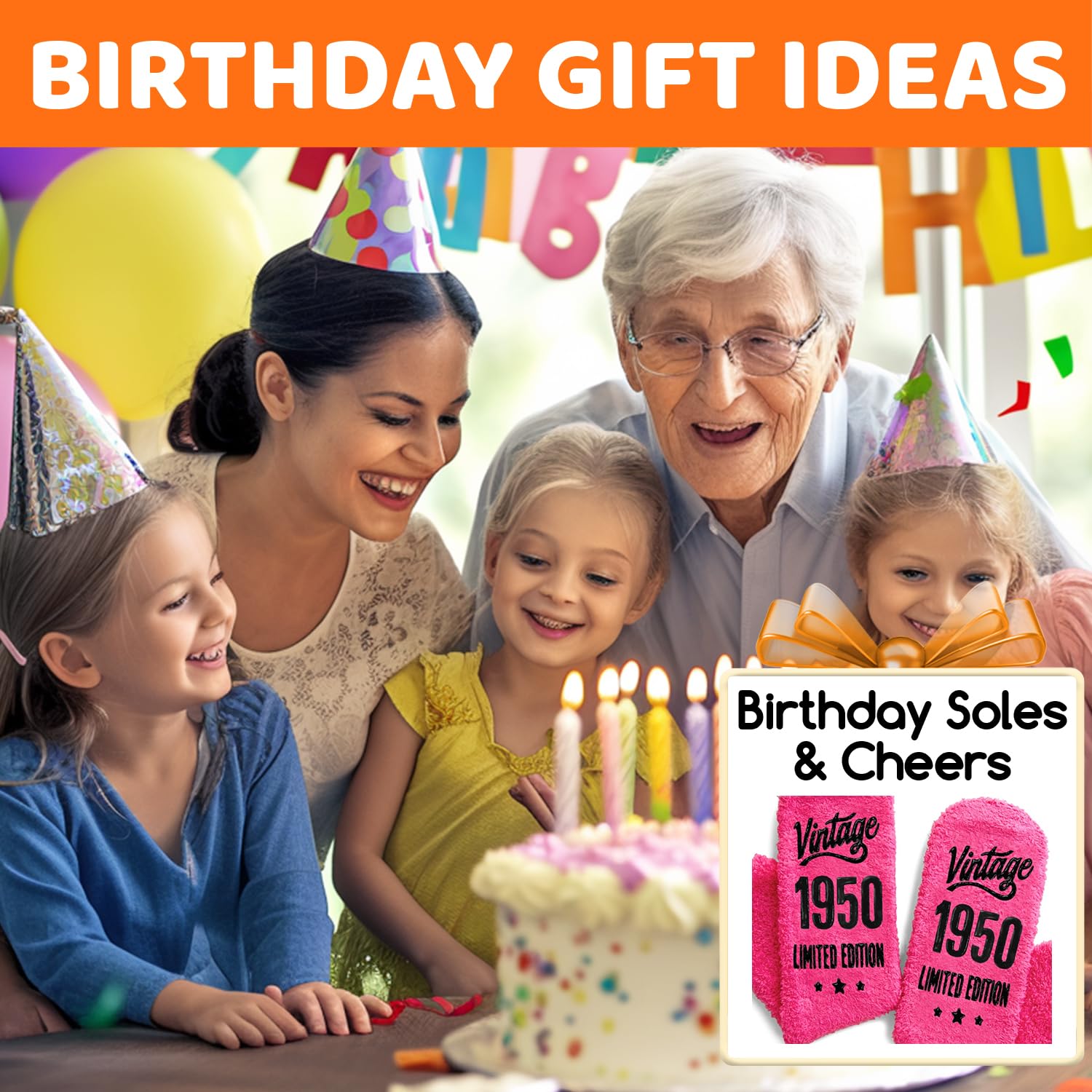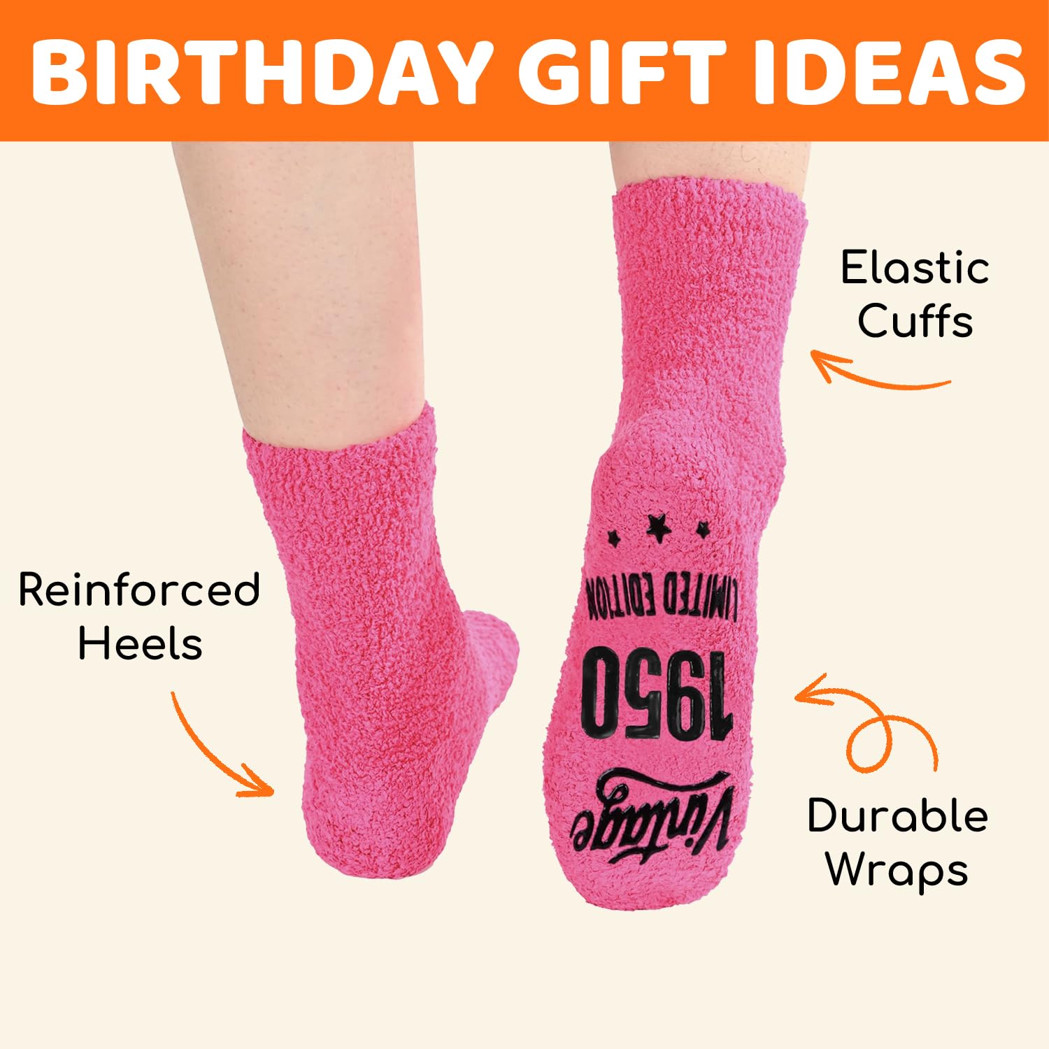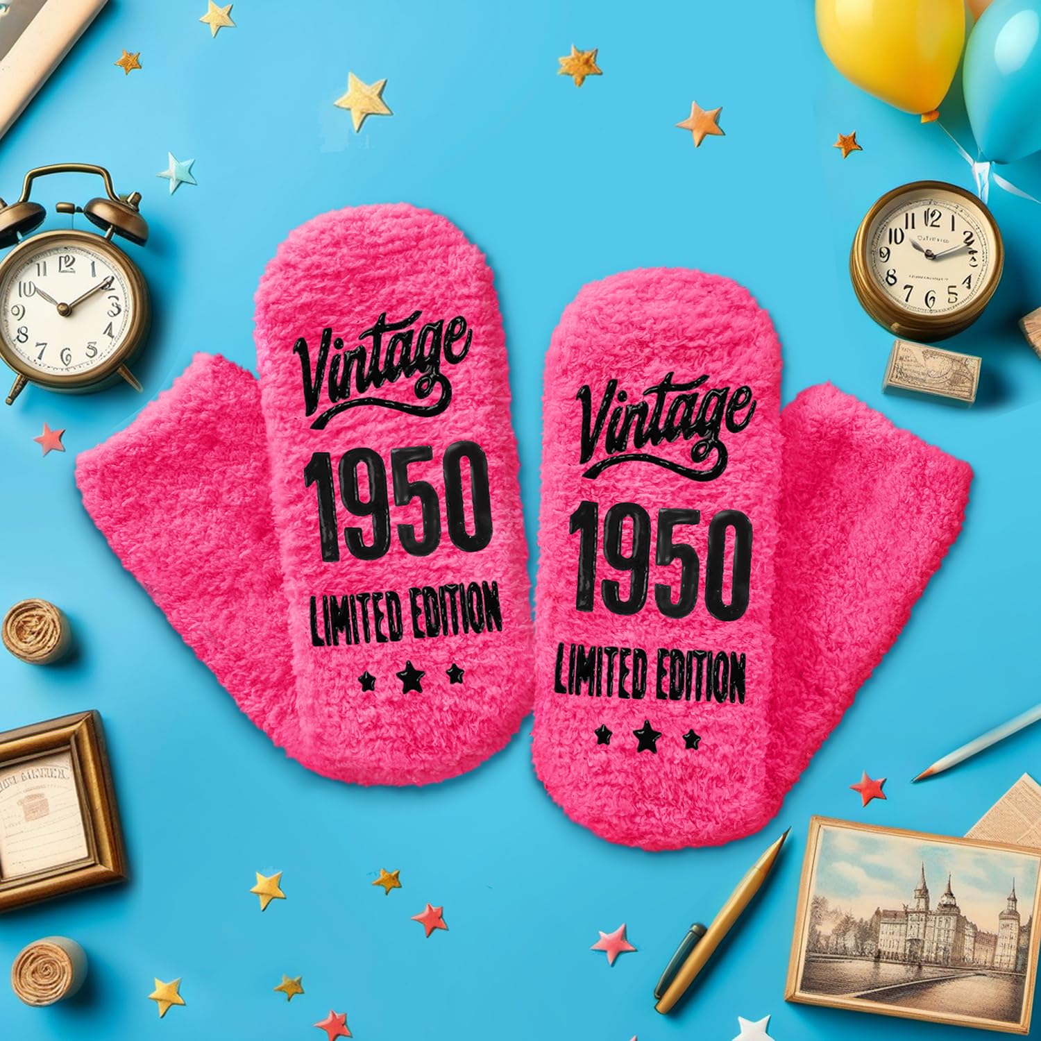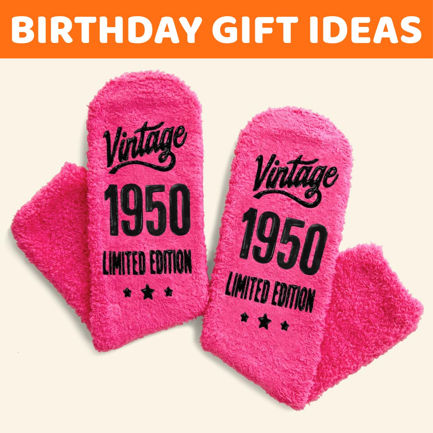 1950 BIRTHDAY GIFTS: Give her this perfect 76th birthday gift to remind her of joy. Her smile will widen when she reads "Vintage 1950 LIMITED EDITION"—practical, emotional, humorous socks for friends or family born in 1950!