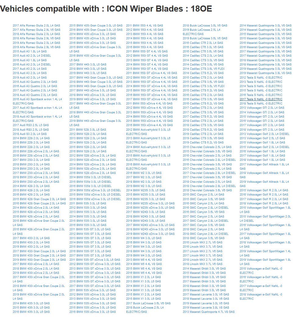 AUDI: 2018-24 S3; BMW: 2014-16 228i, 2017-24 230i, 2014-16 428i, 2015-16 428i Gran Coupe, 2017-20 430i, 2017-23 430i Gran Coupe, 2014-16 435i, 2015-16 435i Gran Coupe, 2017-20 440i, 2017-20 440i Gran Coupe, 2011-16 528i, 2014-16 535d, 2011-16 535i