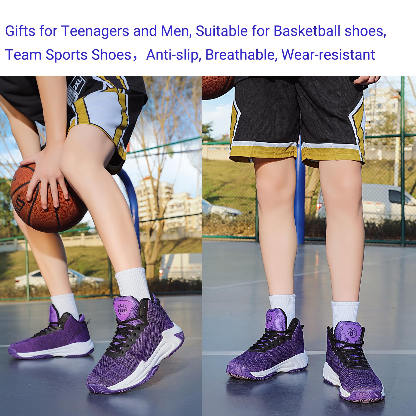❤【Anti slip Rubber Sole】 Mens basketball shoes, rubber outsole with its distinct anti-skid, comfortable and well wear-resistant.