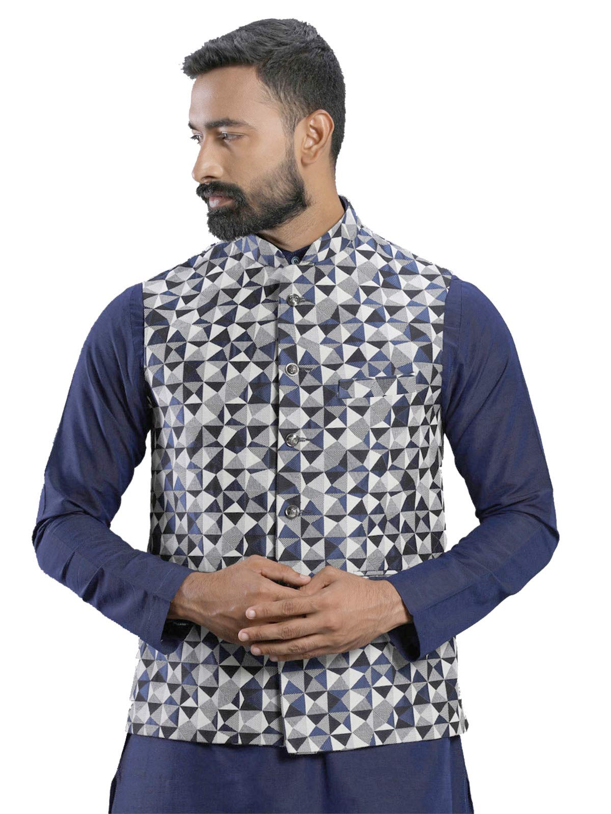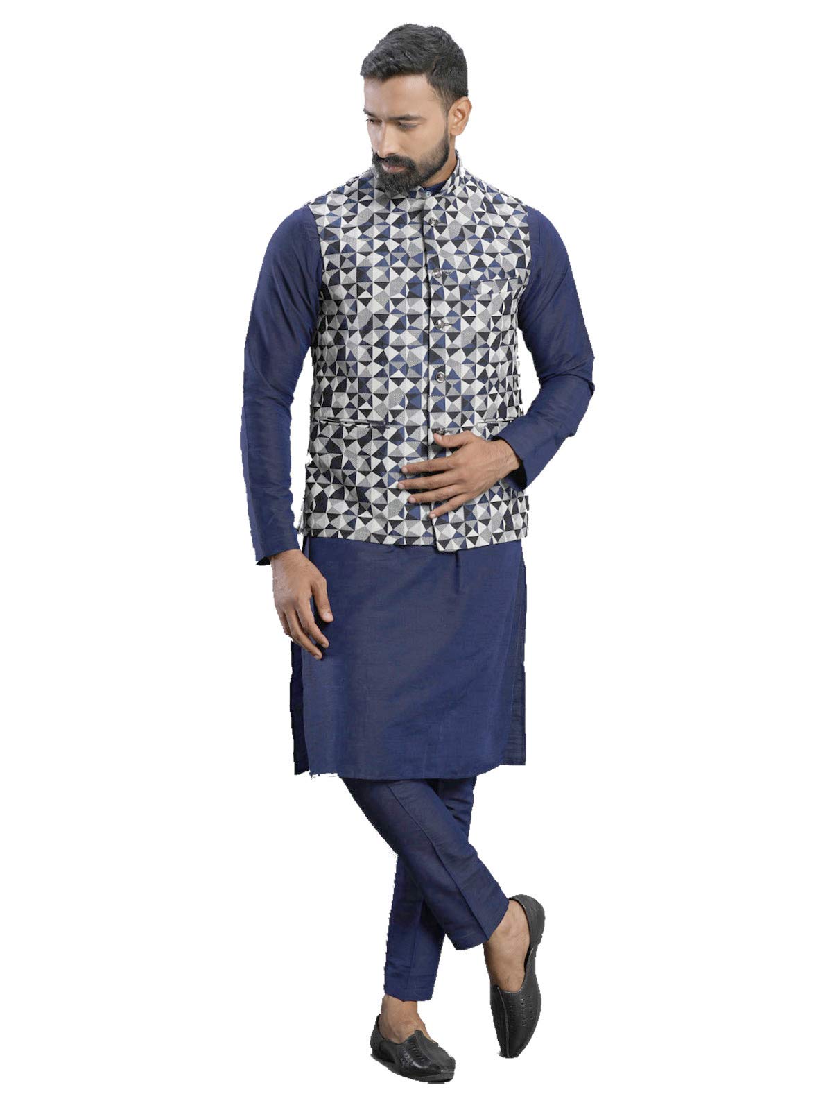 Kurta Color: Navy Blue, Bottom Color: Navy Blue, Waist Coat(Jacket-Koti) Color: Navy Blue