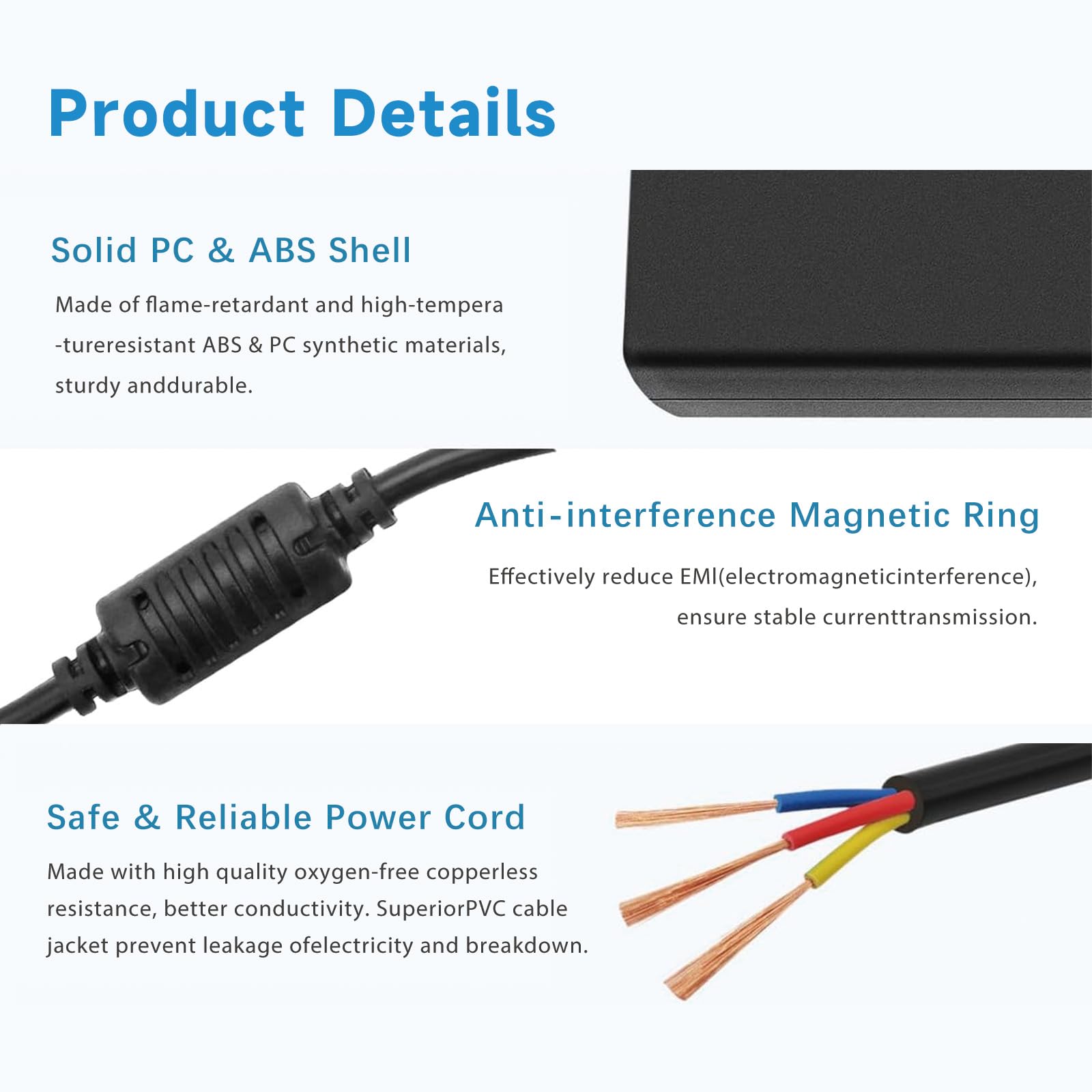 [Certified Safety Protection] . Built-in smart chip provides multi-protection against over-voltage, over-current, short-circuits, and overheating. Includes a heavy-duty 5FT AC power cord.