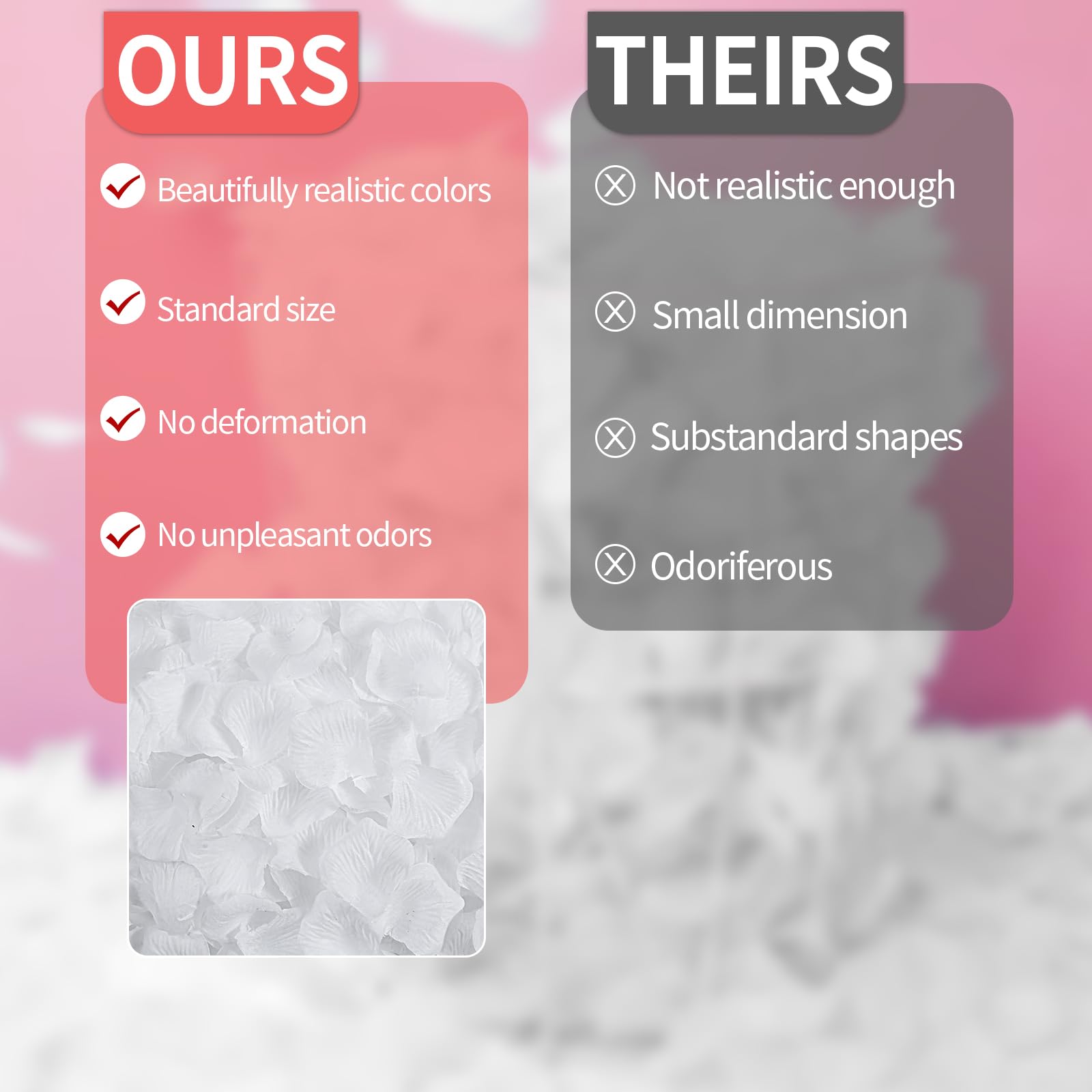 💖【High-Quality Material】💖Crafted from high-quality non-woven fabric, each petal has a realistic appearance and touch. These artificial rose petals are durable compared to real petals, and you can collect them after use for repeated use. The petal size is 1.9 * 1.9 inches, and spreading them evenly will create a floral sea perfect for two. Consider purchasing more for large events like weddings and parties.