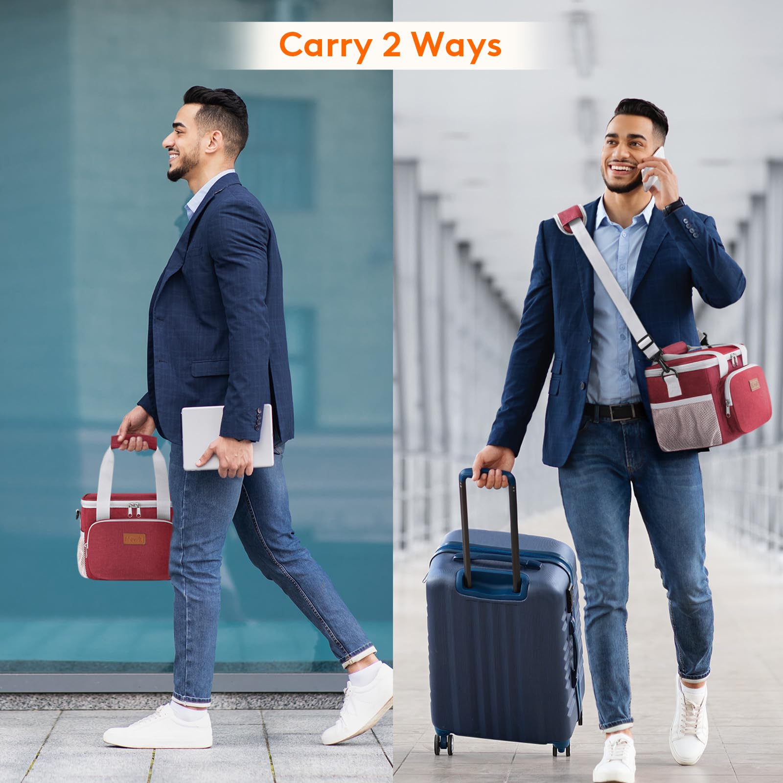 Convenient & Portable: The lid of this cooler lunch bag can be opened up widely with strong two-way zippers, which means you can put your lunch container into the bag and take out of the bag vertically. Prevent liquids from leaking out of the container and soiling inside the bag. Tough handles and shoulder strap allows you to carry it easily. Moreover, the front and side extra pocket can hold small items like keys and earbuds