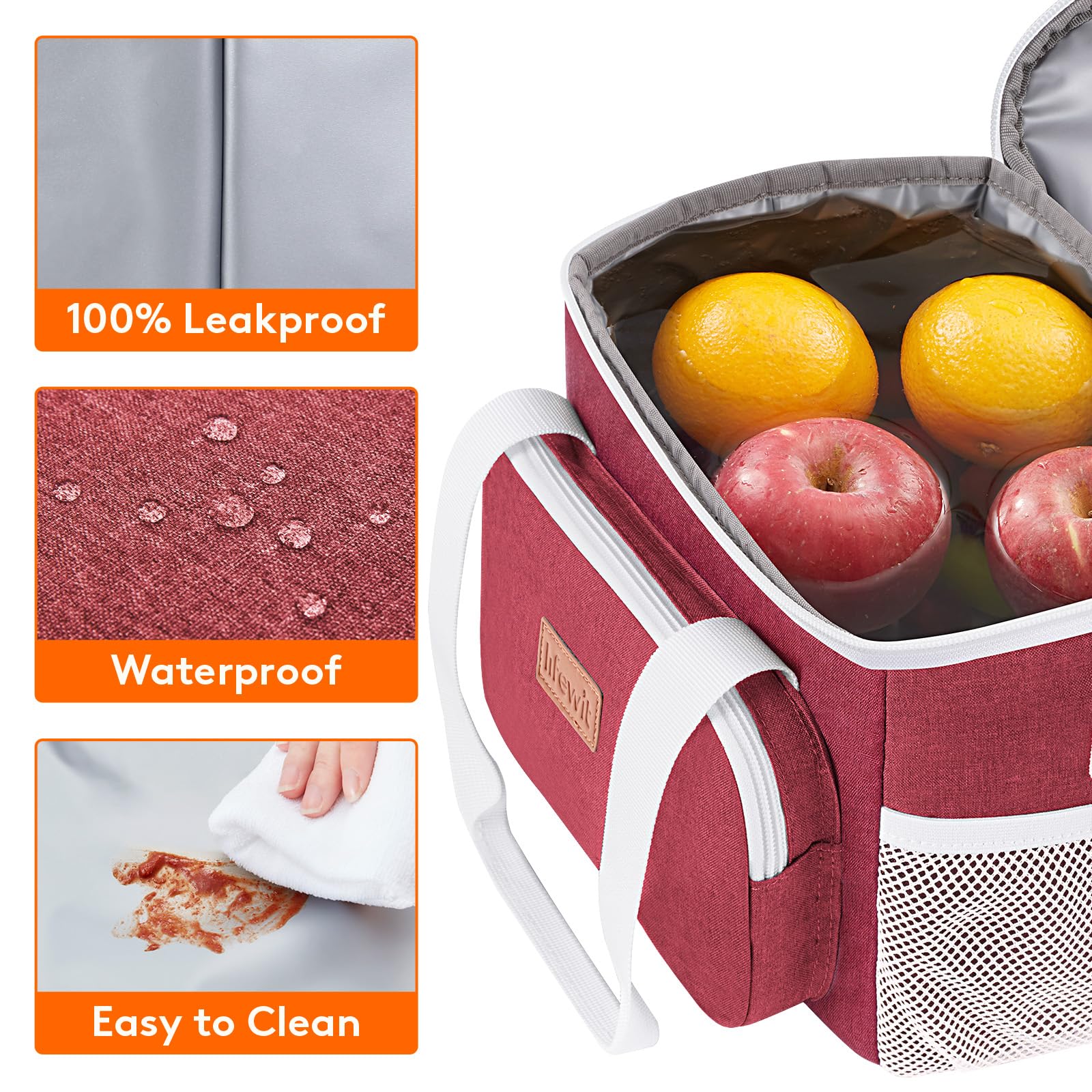 Leakproof & Waterproof: The exterior of lunch box for men is constructed out of 600D water-resistant dirt-proof Oxford fabric for durability and water proofing and easy cleaning. Even when full with water and ice, it holds fruits and drinks well, will not leak at all.