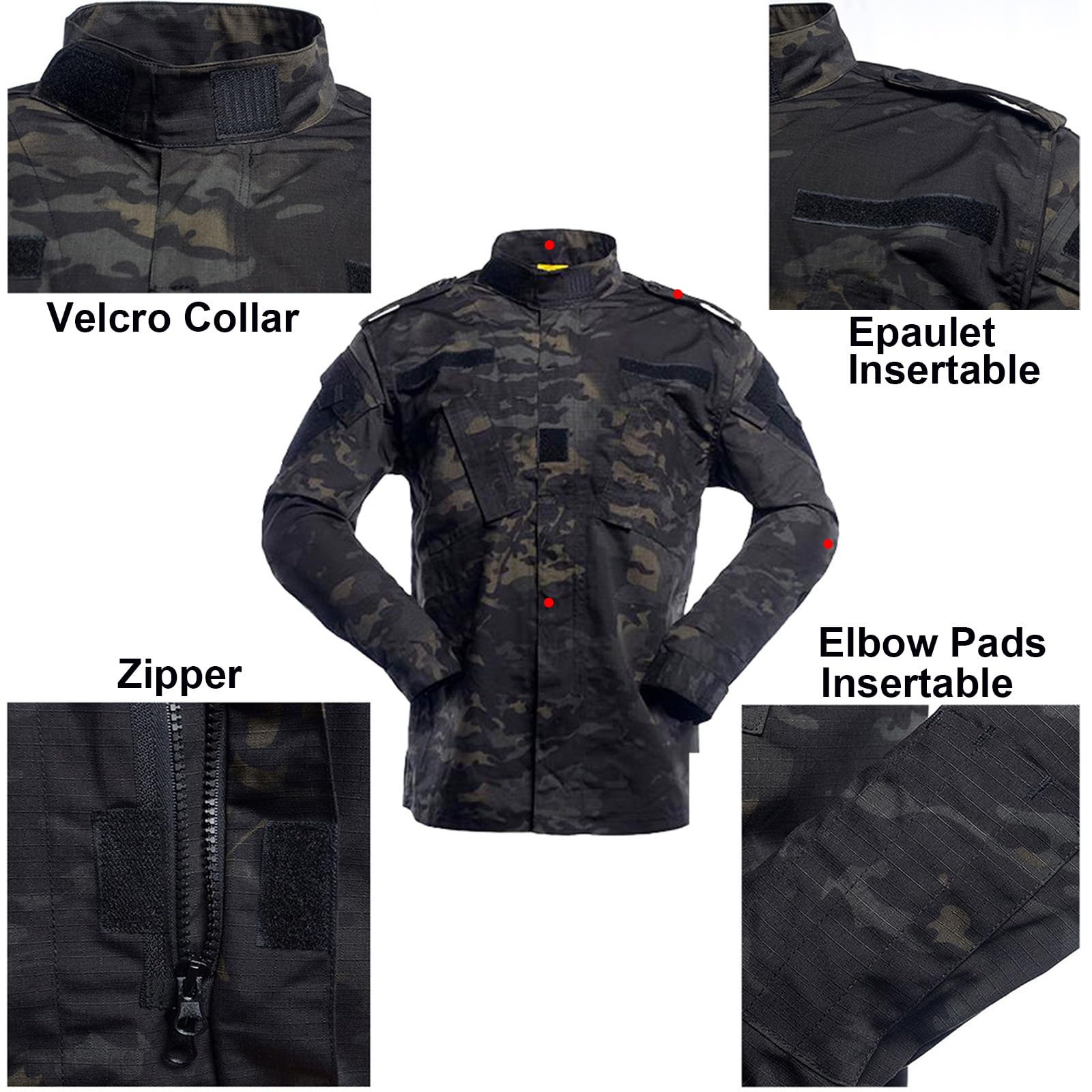 【Package Contains】Tactical Como Pants + Shirt + Cap + Gloves + Balaclava Mask. A set of airsoft gear.