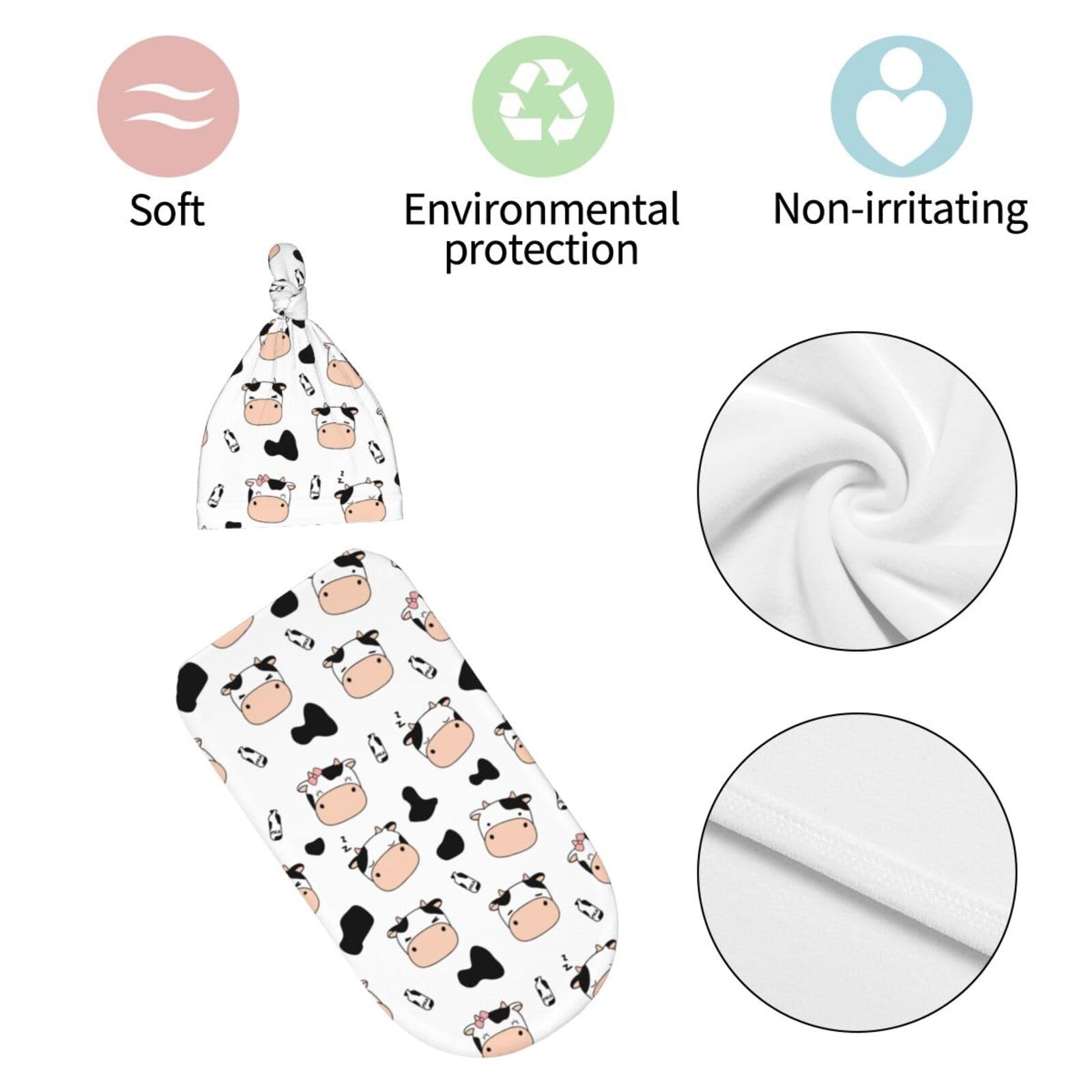 SOFT MATERIAL: Our cute cow baby swaddle blanket is made of high-quality polyester, which is very soft and skin-friendly, has good warmth and elasticity. and also enough for all seasons