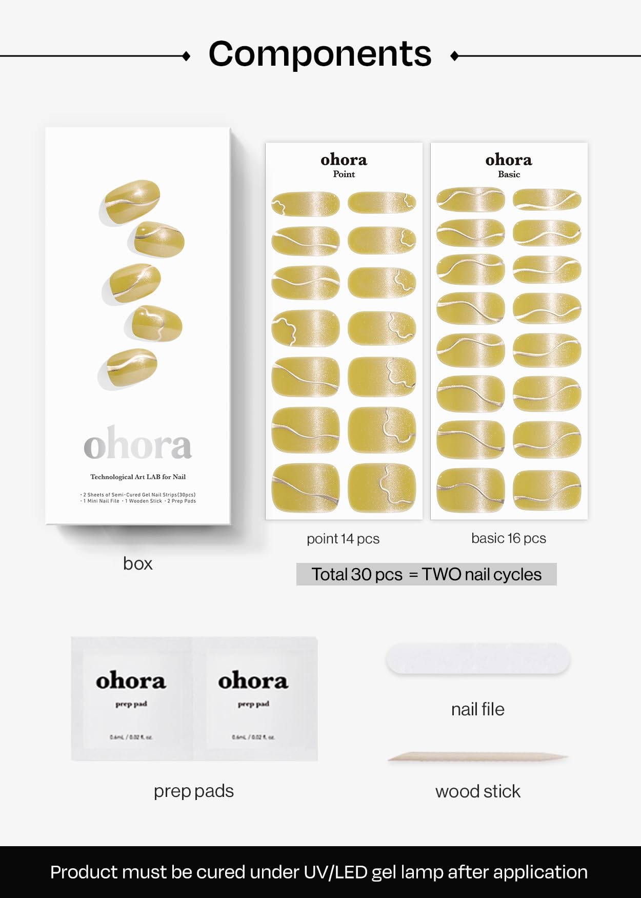 Pro Tip for Beautiful Nails That Last 2 Weeks - After applying, cure the nail strips using ohora Gel Lamp for 2-3 times for best results and to minimize risk of chipping and pop offs.