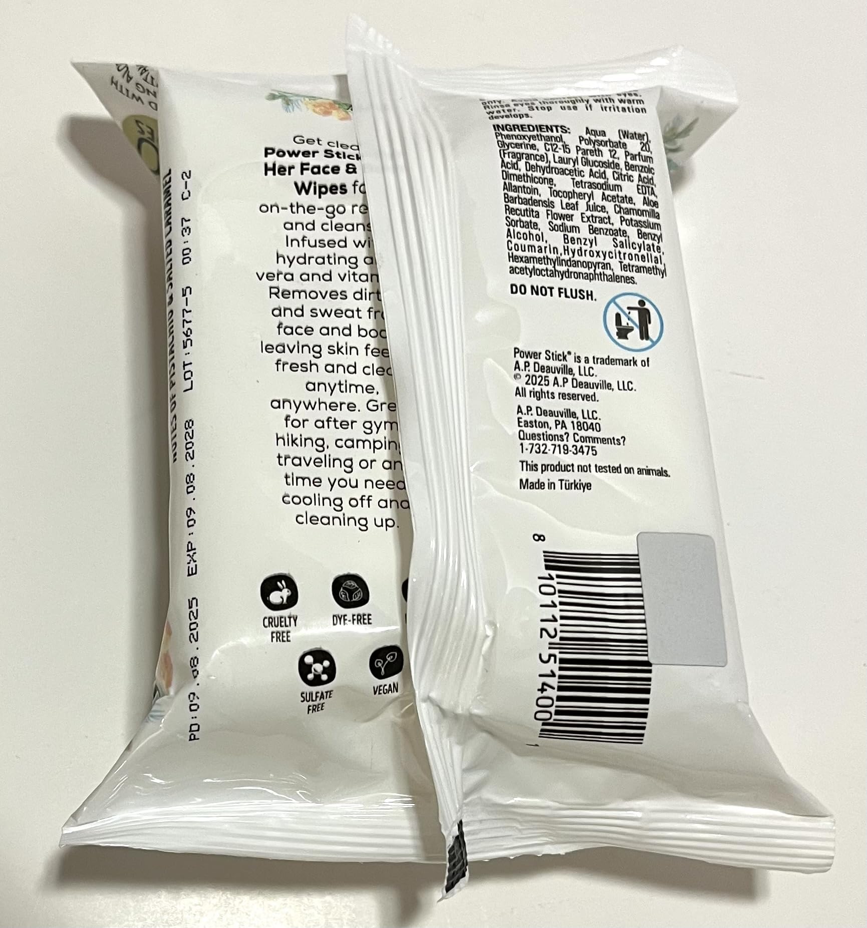 BRAZILIAN MIST SCENT: Face and body wipes infused with exotic notes of pistachio and salted caramel for a refreshing and indulgent cleansing experience