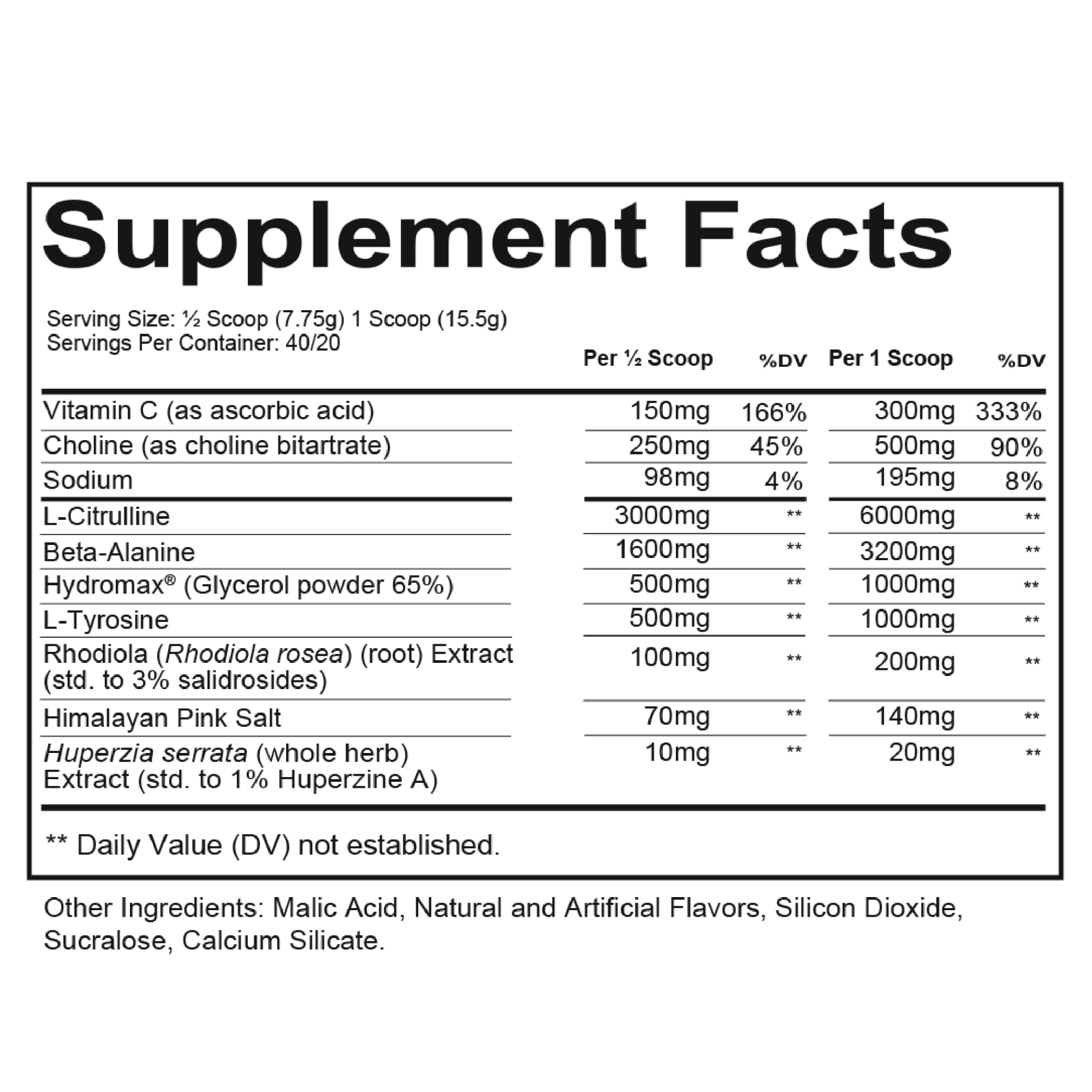 Unstoppable Power - Formulated with a potent blend of professional grade ingredients, our ultimate pump enhancing pre workout powder combines 6g l-citrulline, 3.2g beta alanine and 1g Hydromax to maximize muscle volume and endurance.