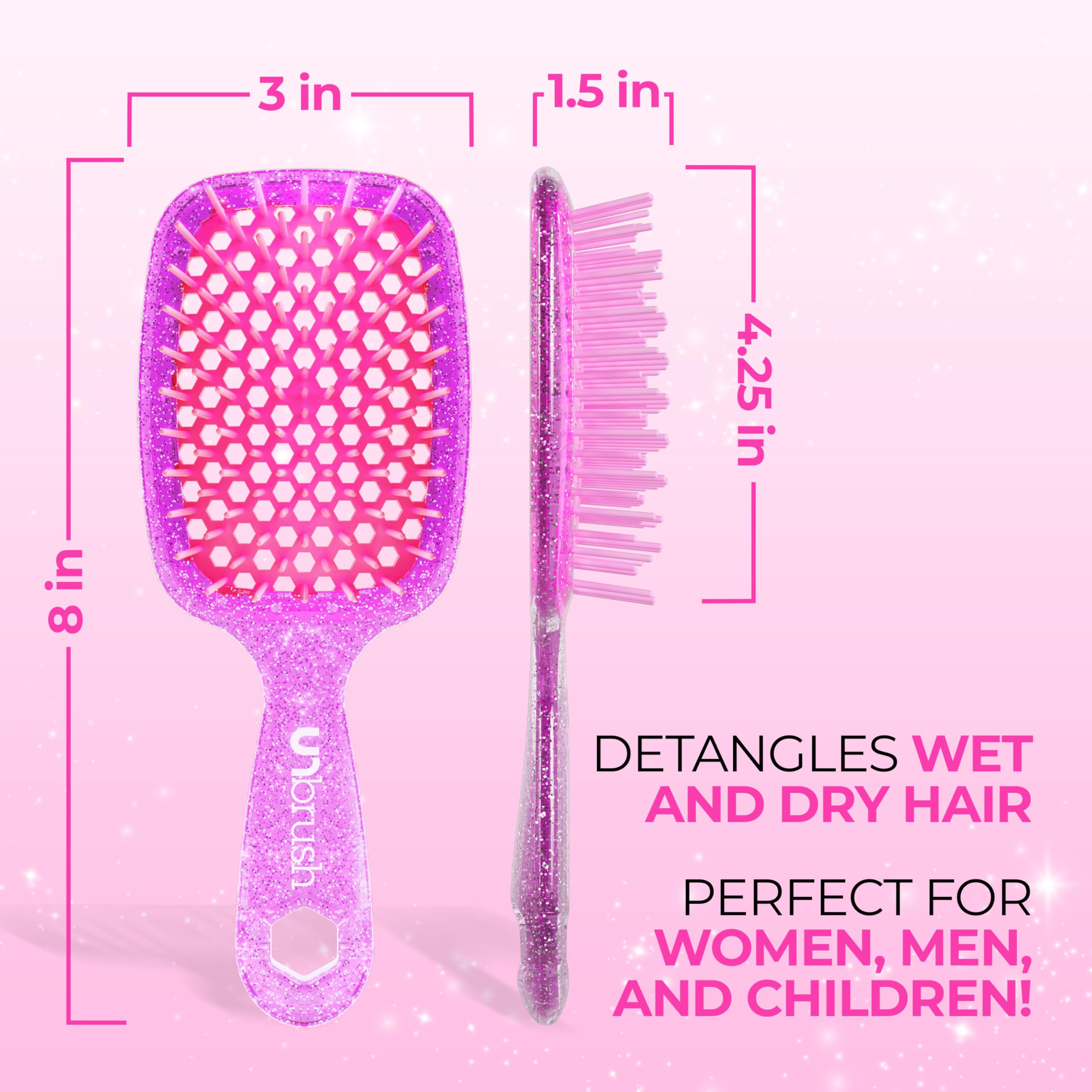 Experience the ultimate in hair care with the UNbrush Wet & Dry Vented Detangling Hair Brush. This innovative detangle brush is crafted to gently and thoroughly extract knots and tangles from even the most unruly or fine hair. Featuring a blend of 105 dual-length bristles, the UNbrush vented hair brush ensures a pain-free detangling experience while minimizing breakage. The DuoFlex Anti-Static Bristles on this detangling hair brush work like magic to gently release tangles, while the 58 long bristles easily detangle even the most stubborn hair. The 47 mini bristles smooth and polish your hair, leaving it looking and feeling silky and healthy. Whether your hair is wet or dry, this hair detangler brush works equally well, making it a versatile addition to your hair care routine. The unique backless vented cushion reduces styling time by allowing air to circulate more freely, speeding up the drying process. This hairbrush for curly hair, thin and straight, or thick hair is also incredibly easy to clean, ensuring hassle-free maintenance. Weighing only 1.5 oz, the ultra-light, high-performance handle offers durable flexibility and ease of use, making it comfortable to hold and maneuver. Ideal for women, men, and children, UNbrush is the perfect at-home or travel hairbrush designed to meet the needs of the whole family. The consistent high-quality construction and exceptional performance of this brush provide long-term value. Say goodbye to painful detangling and hello to smooth, manageable hair with the UNbrush Wet & Dry Vented Detangling Hair Brush.