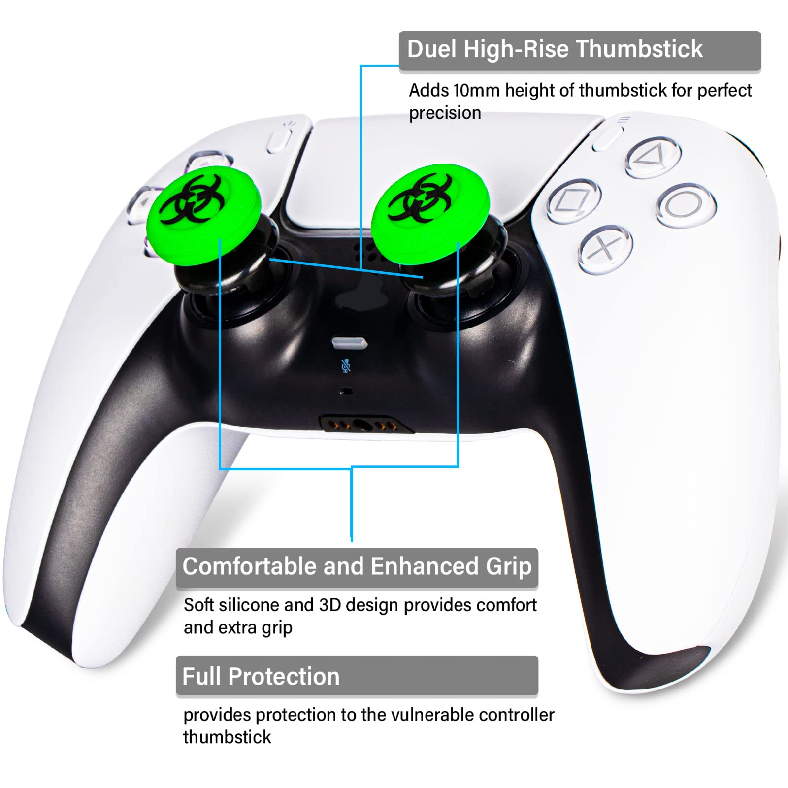Best Grip & Comfort - With the thumb grip cover installed on, the soft rubber silicone material provides comfort and extra grip, get better experience in a long session game play, makes everything under control;