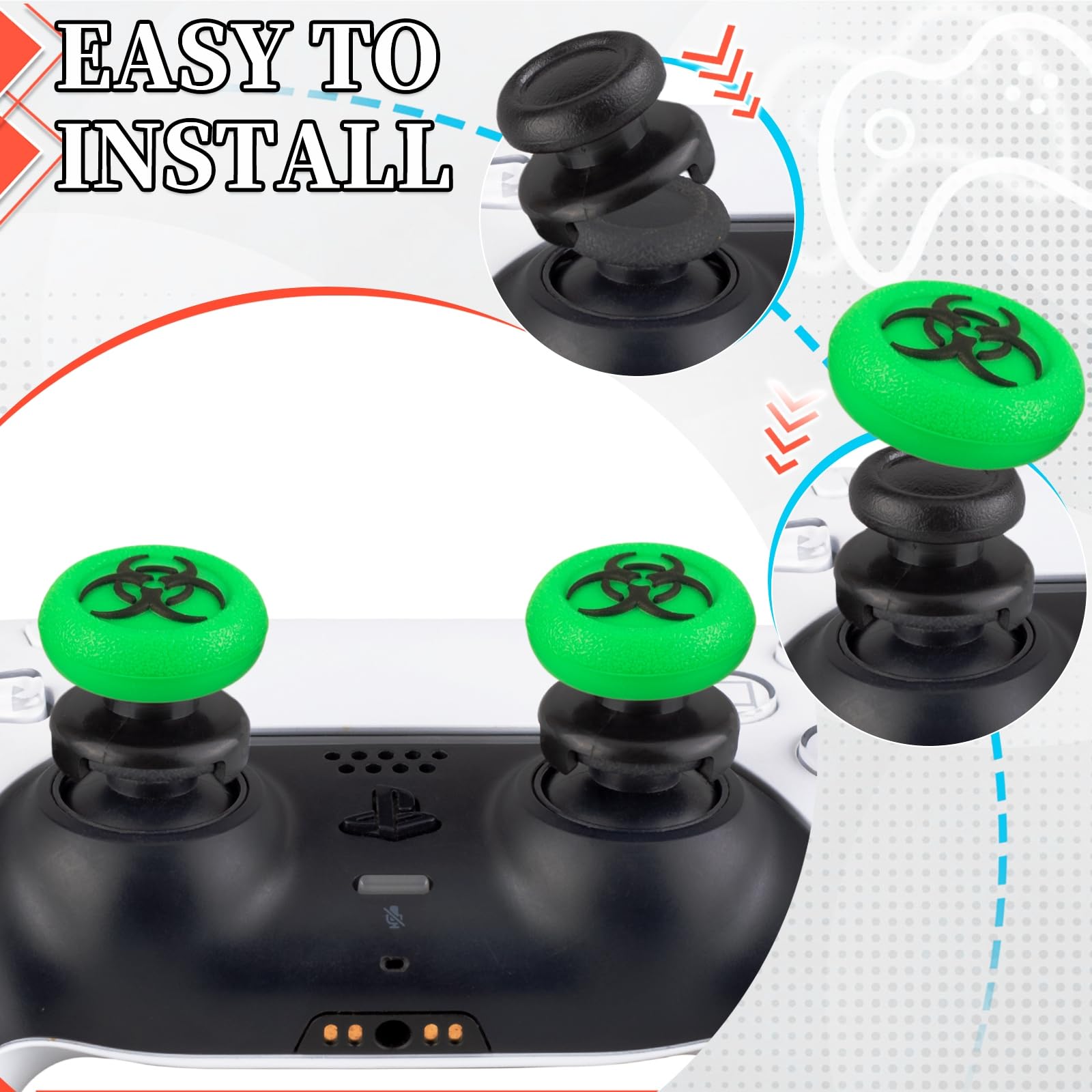 NOTICE - The sets are compatible with PS5 Dualsenese & PS4 Controller; Clean the grip for best performance; Keep the sets away from children under 3 years old, Keep the sets way from heat sorce and acid