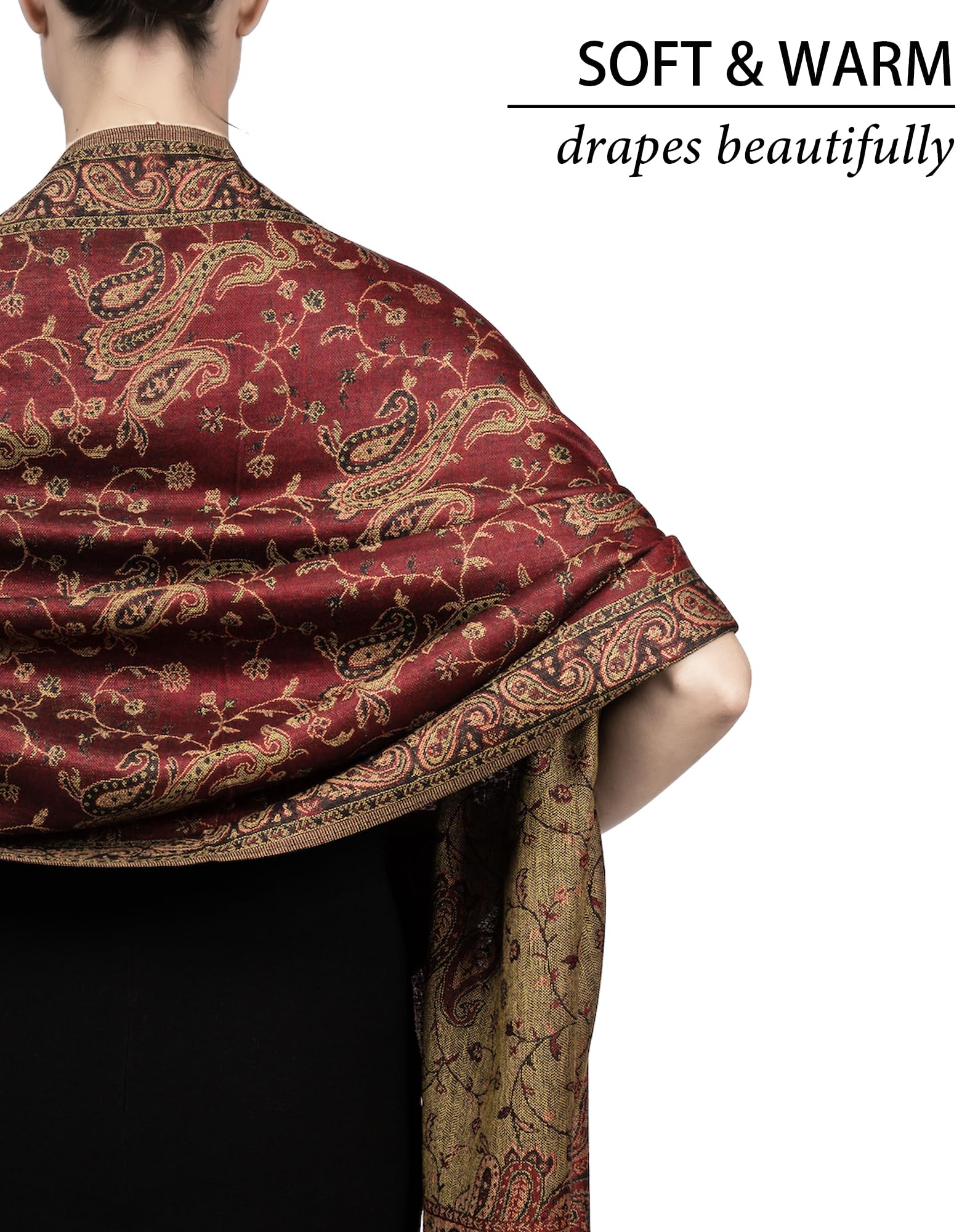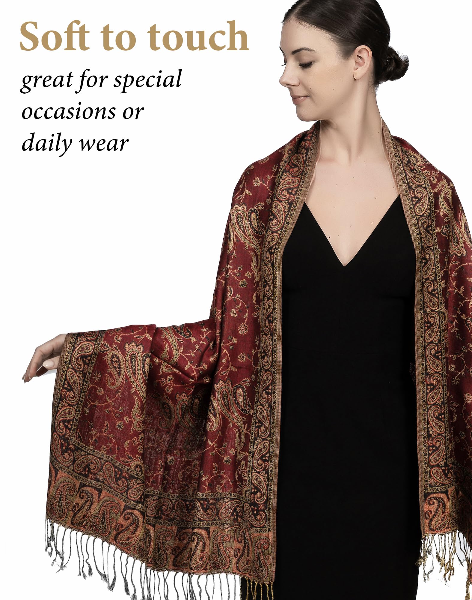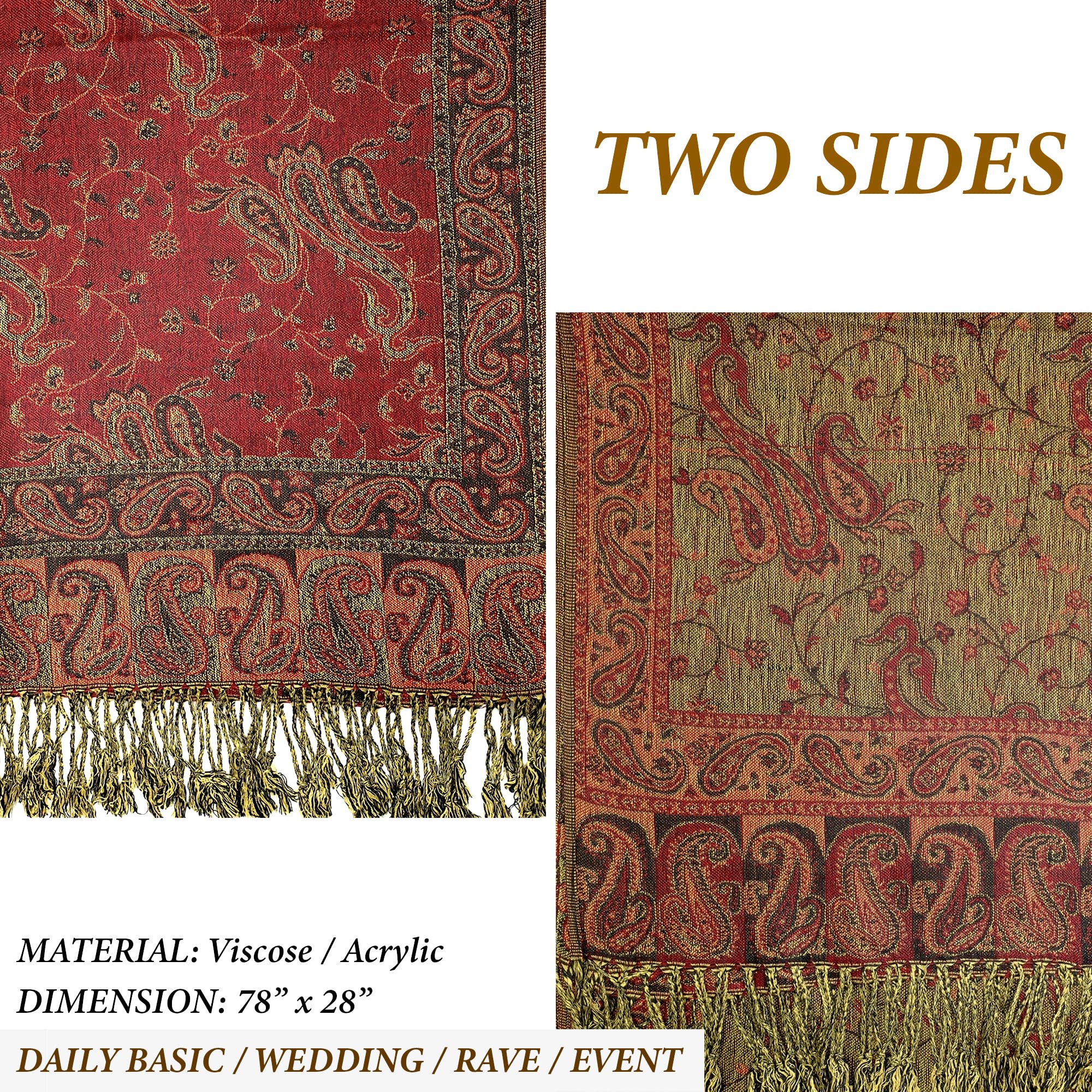 ✔️ Exotic Tapestry Look with Reversible Design – This reversible paisley shawl wrap for women features two beautiful color tones in one piece. It complements everything from evening gowns to rave outfits for men and women, offering vibrant style with graceful comfort.