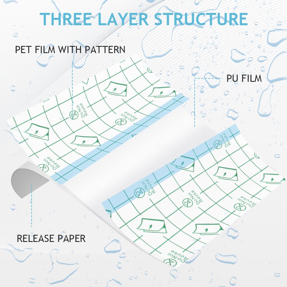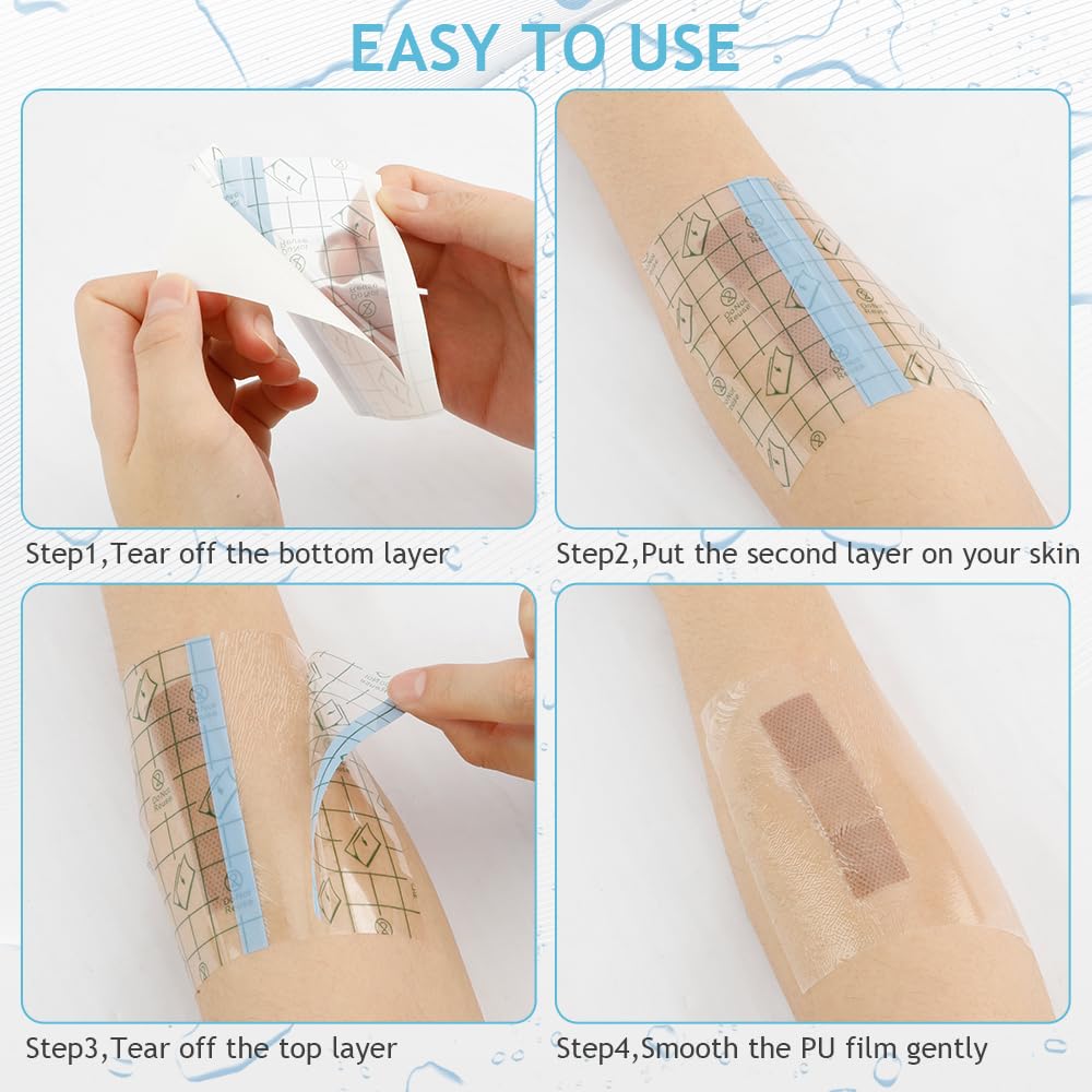 EASY TO USE: Transparent film dressing has three layers, which are composed of PU film, adhesive and release paper, when you use waterproof bandages for wounds, tear off the release paper first, stick the adhesive side on the part you need to stick, then tear off the top layer, and then press gently to fix the position, clear bandages waterproof can not be reused.