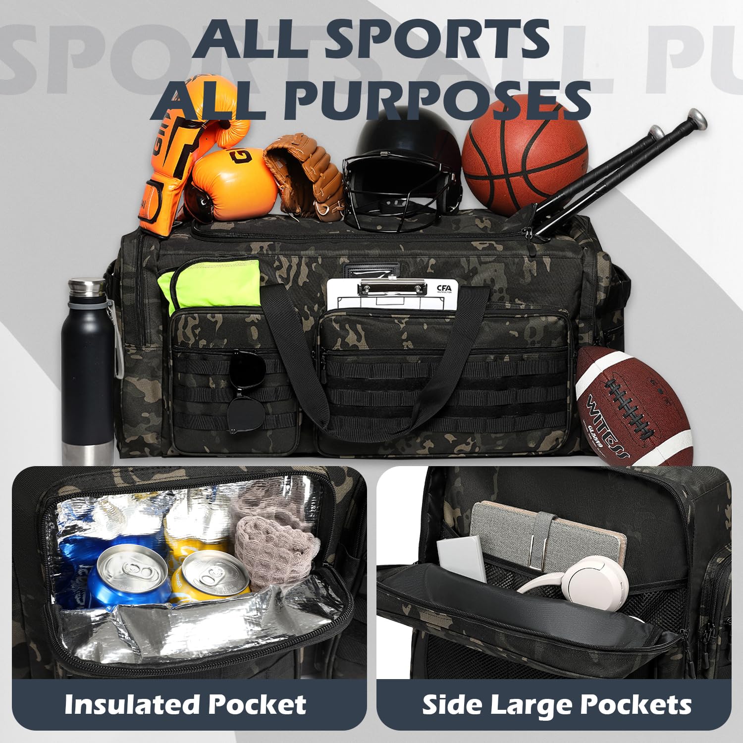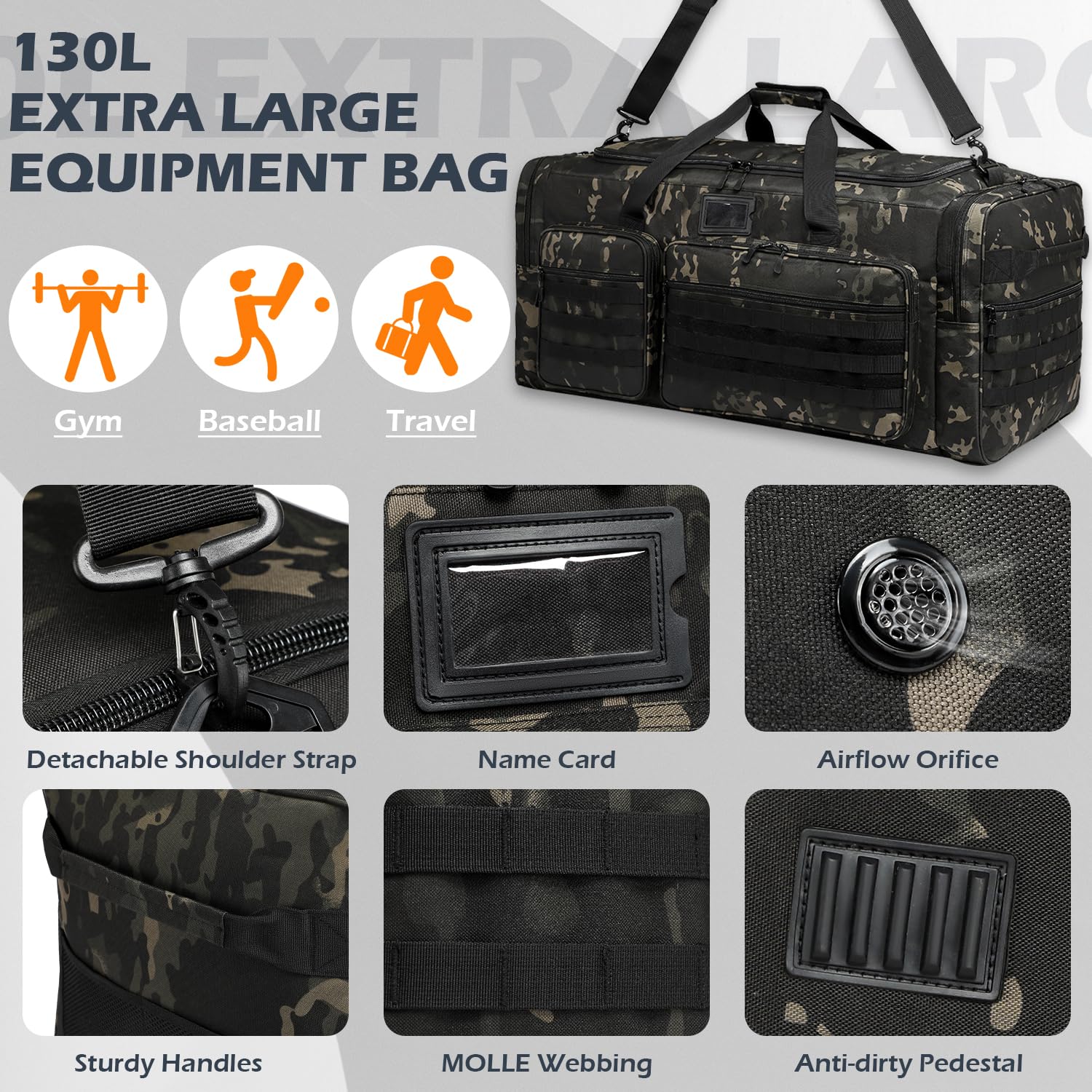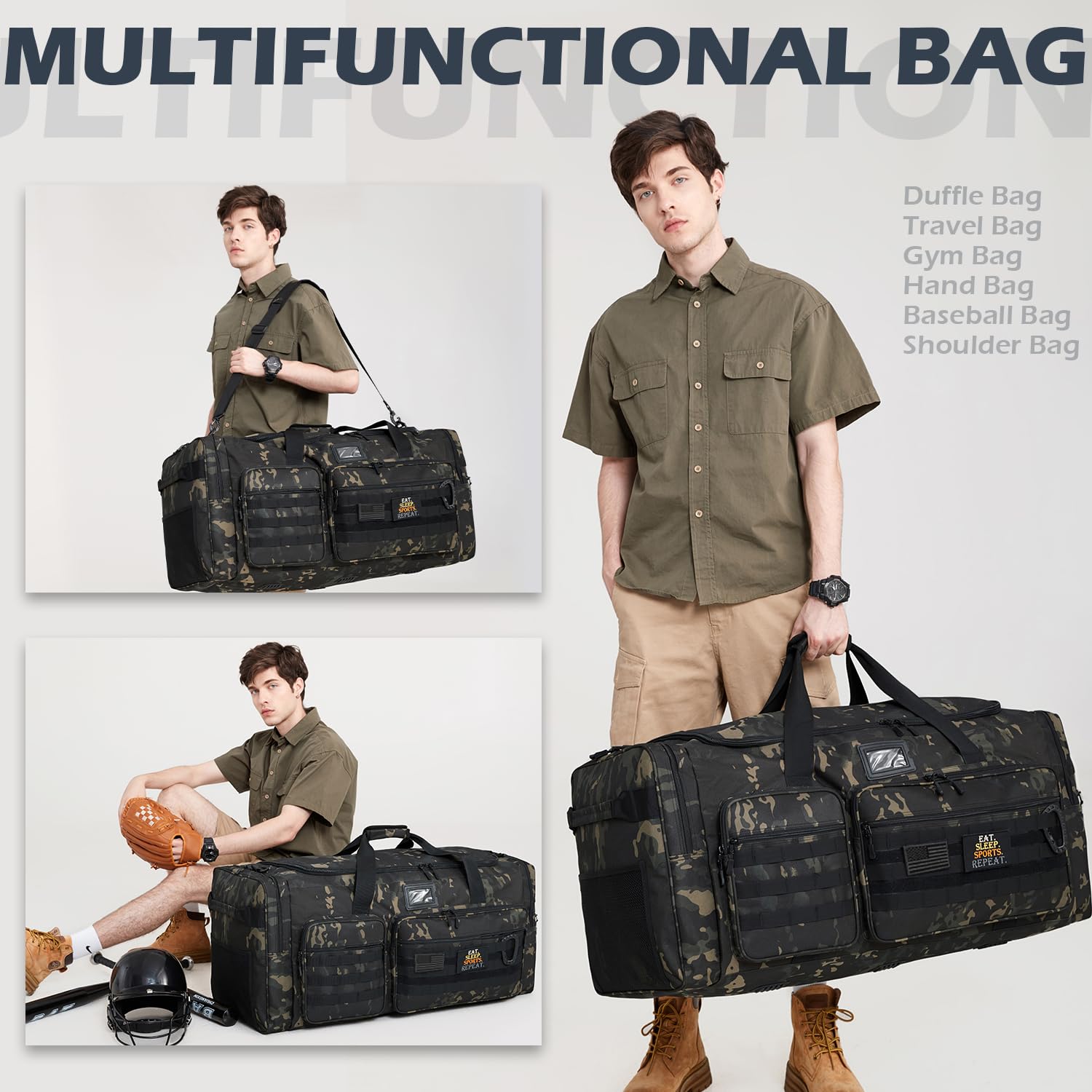 Heavy Duty Material : The baseball duffle bag is constructed of water repellent & tear resistant premium nylon and heavy-duty zipper with reinforced stitching and seams and features padded carry handles. Adjustable buckles allow for secure, organised storage during travel, outdoor and internal activities. This large duffel bag is not only reliable but also the perfect utility bag choice for any storage solution