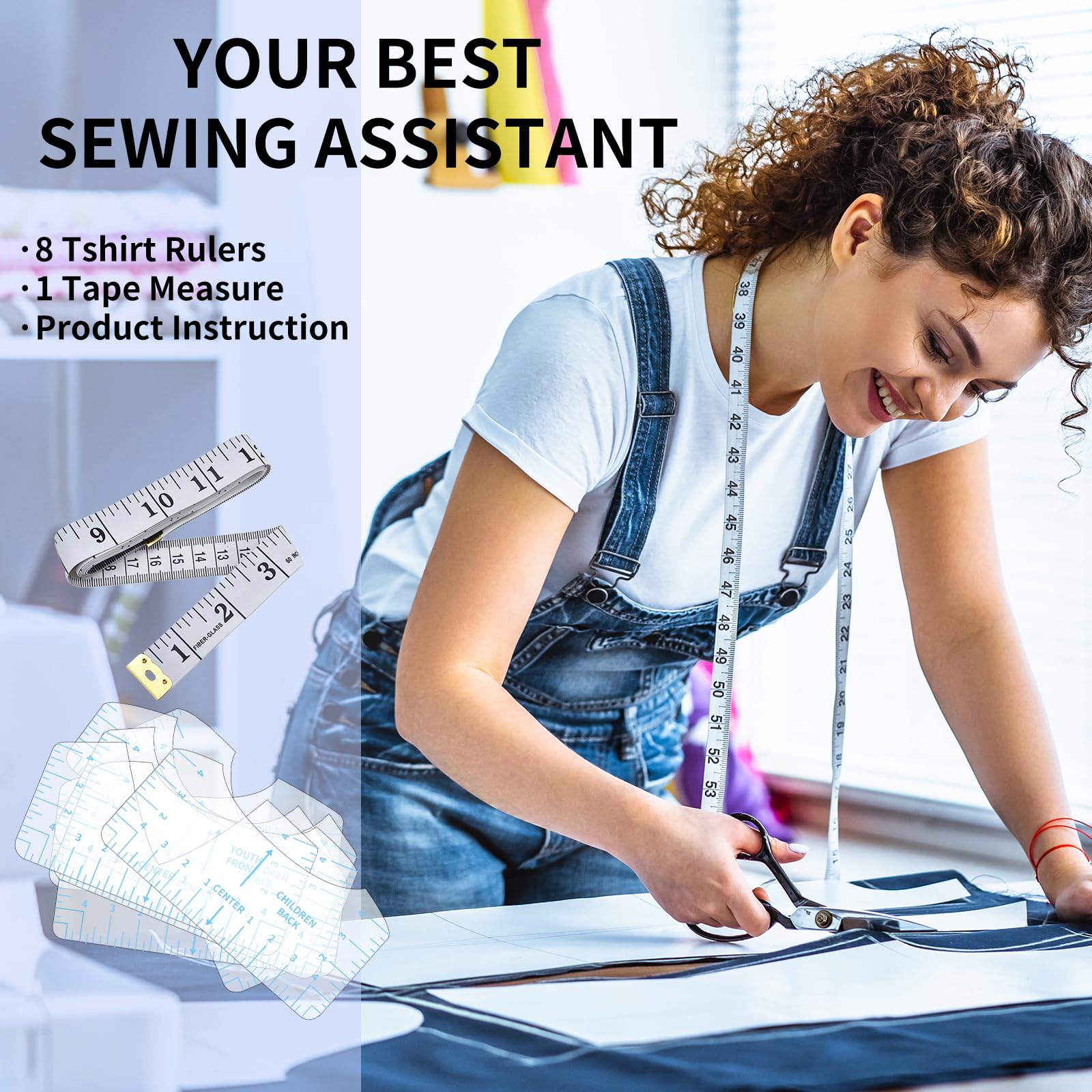 đĽźă9pcs T-Shirt Alignment Tool Set ăT shirt ruler guide include 4 different sizes rulers, 10"x5"/10"x4.5"/10"x3.5"/10"x2.5". and 1 pcs soft measuring tape, lehgth 59". Help you to make alignments and save time on center your designs.