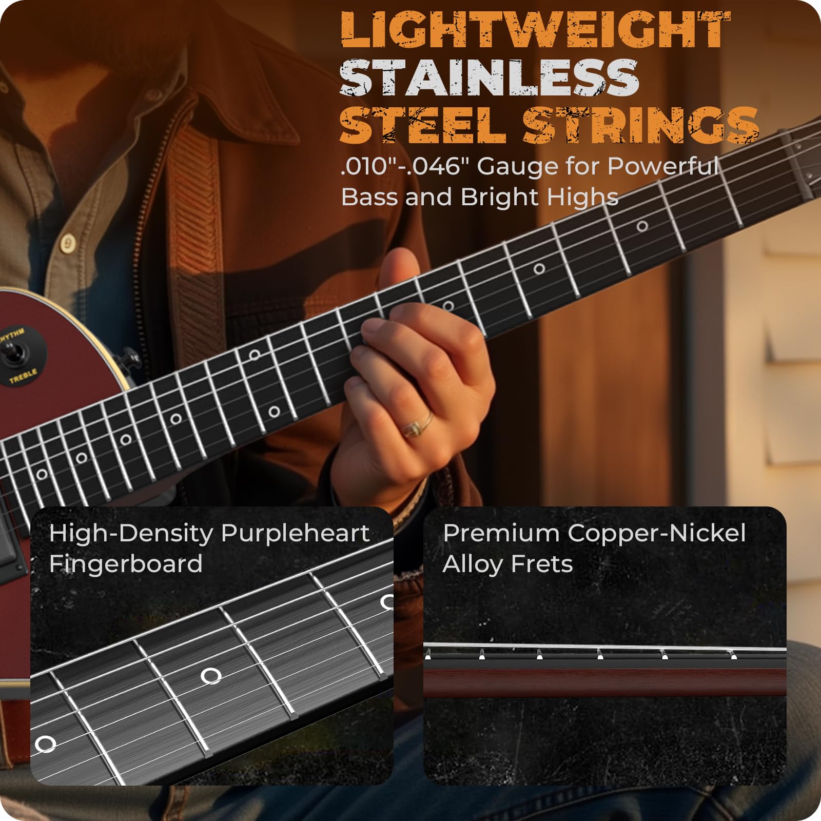 PRECISION AND PLAYABILITY: The Fesley electric guitar offers a 24.75-inch scale length with a 1.69-inch plastic steel nut for precise intonation and ideal string spacing. Its 22 jumbo frets ensure smooth transitions across the fretboard, delivering enhanced playability for both beginners and experienced players.