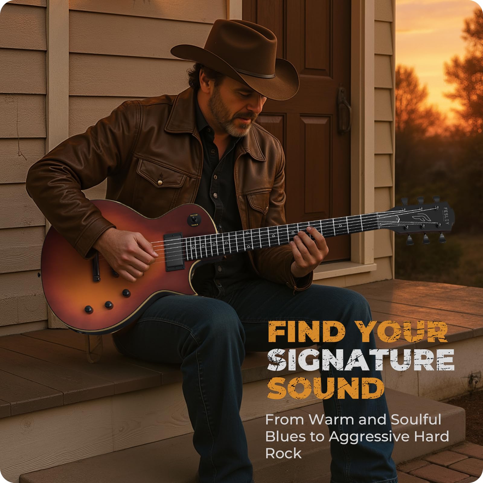 VINTAGE STYLE WITH MODERN COMFORT:The Fesley Electric Guitar Kit combines a contoured body with a vintage matte finish, delivering classic looks, excellent sustain, and aggressive tone, all while ensuring comfortable playability.