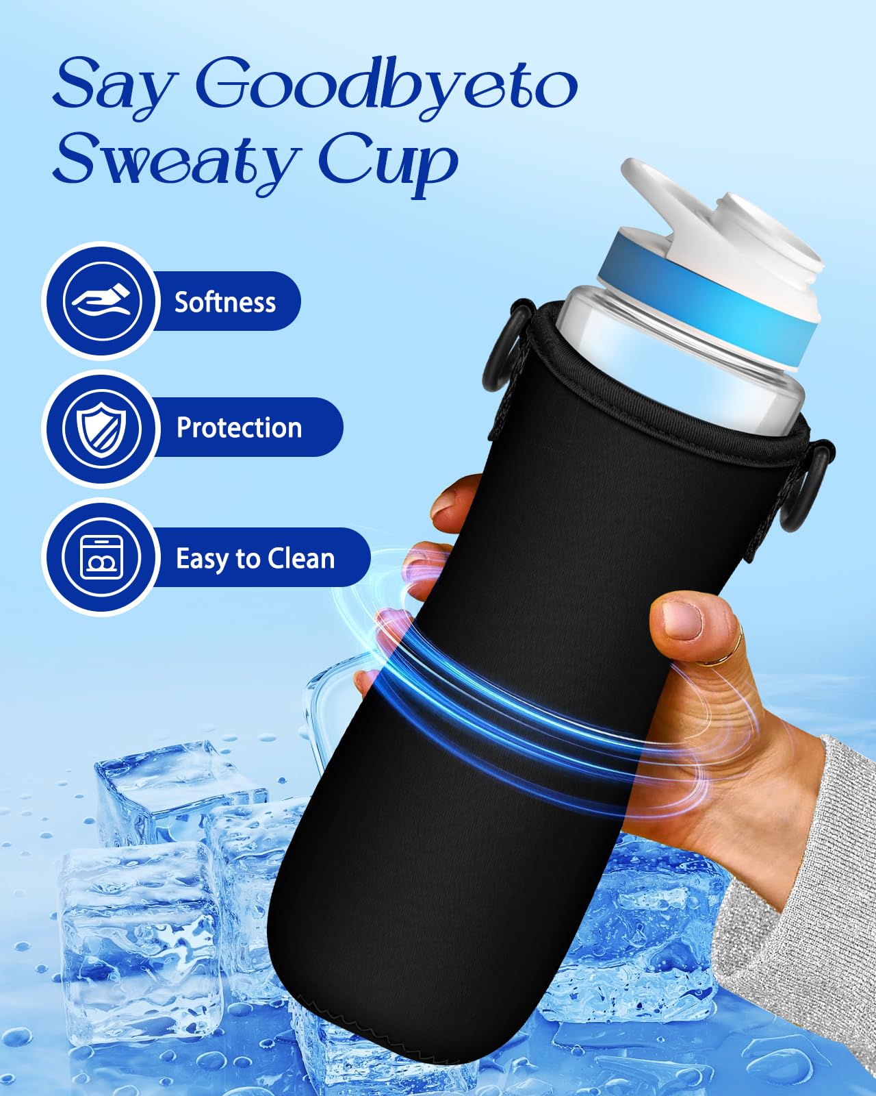 Absorbs Sweat, Prevent Condensation and Easy to Clean: Made of neoprene, it effectively absorbs sweat, keeping your bottle and hands dry. It also prevents your desk or bag from getting wet. Machine washable.