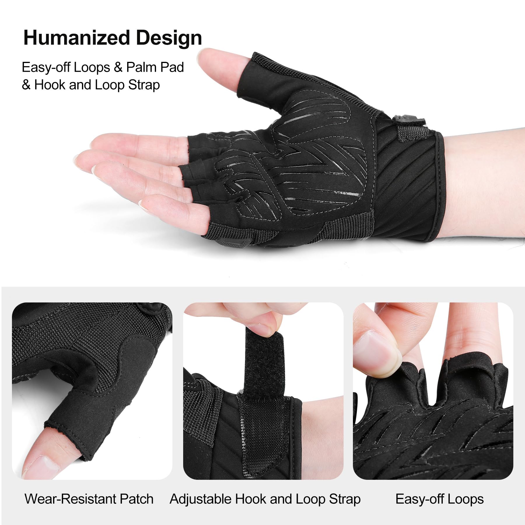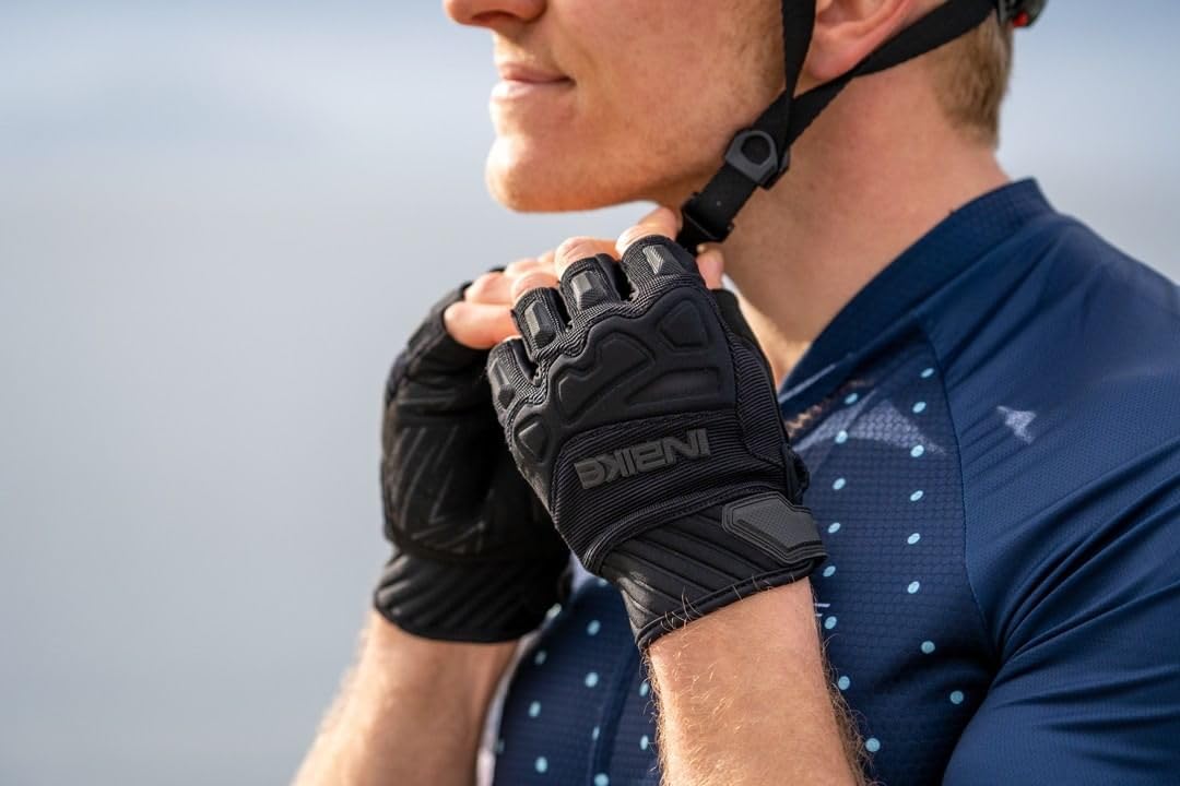 【Humanized Design】INBIKE cycling gloves perform its high quality in full details. Hook and loop strap helps you adjust the tightness to make half-finger cycling glove fit you. It is also convenient to take off the half-finger gloves with the easy-off loops which are designed on the middle finger and ring finger. Comfortable hemming protects wrist while absorb sweat.