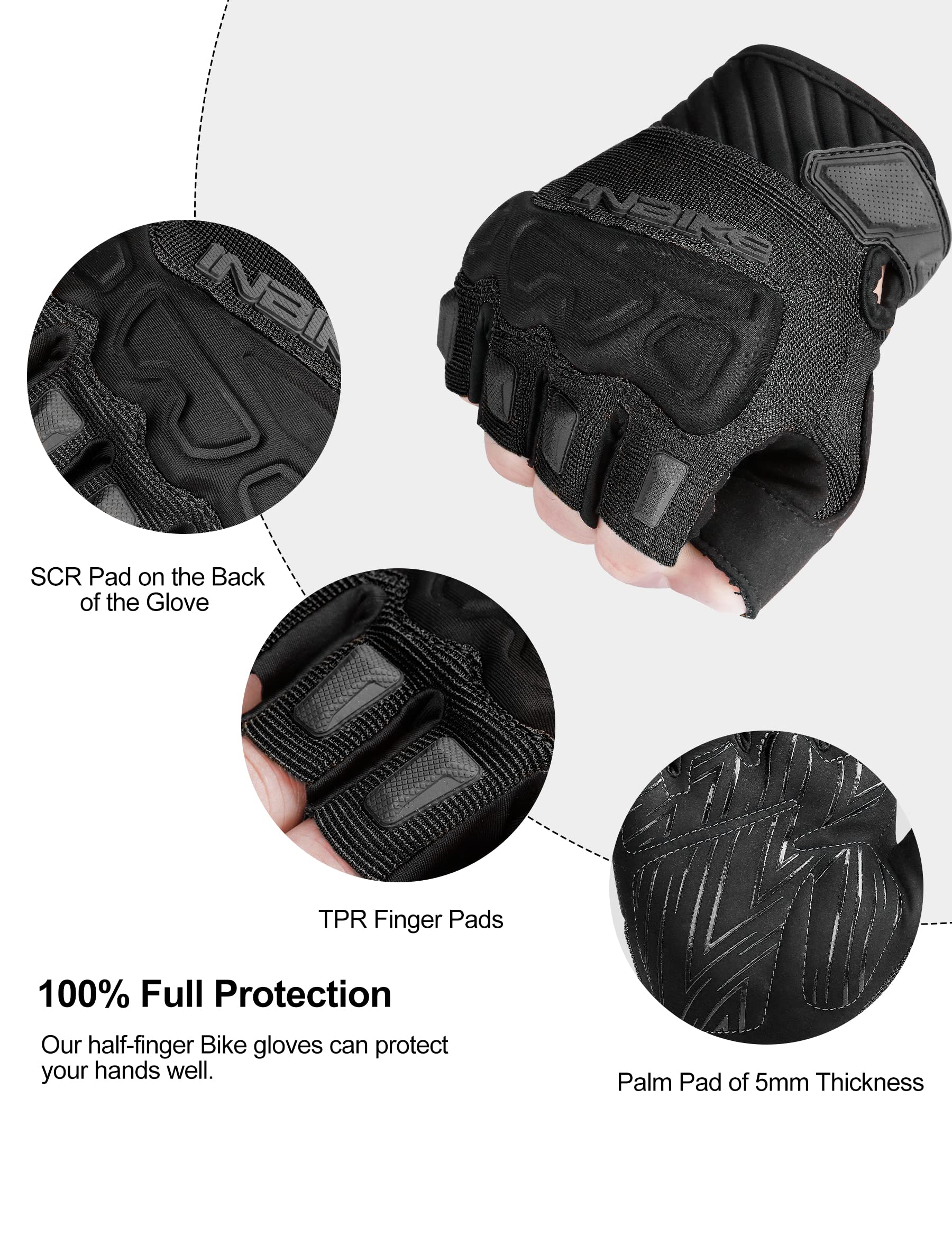 【Breathable Durable and Comfortable】INBIKE MTB gloves are made of composite fabric-75% Nylon,15% Polyurethane,7% Spandex and 3% TPR. Super Breathable fabric allows the fresh air to enter for keeping your hands cool and dry effectively, and the soft and skin-friendly material gives you a nice snug fit when you are riding a mountain bike.