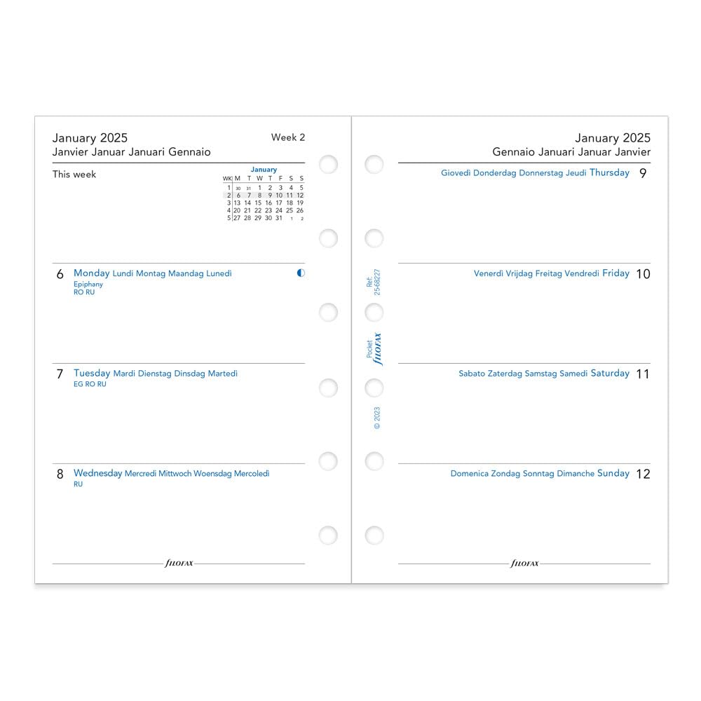 Week-to-View (WTV), Week-on-Two-Pages, Multilingual Planner, Dated Calendar Diary Refill included for 2025
