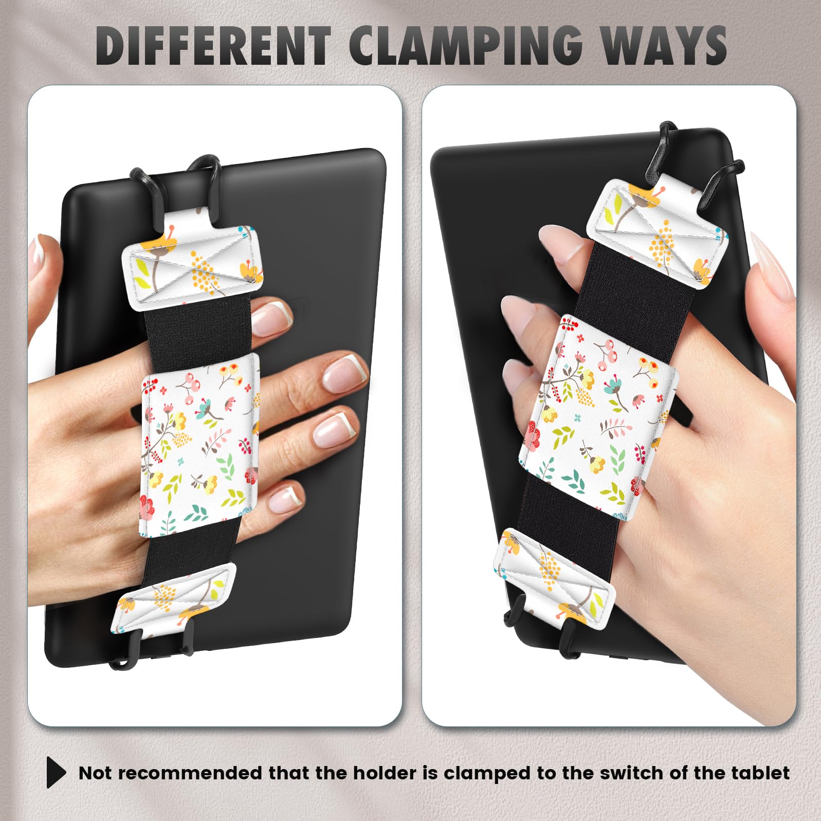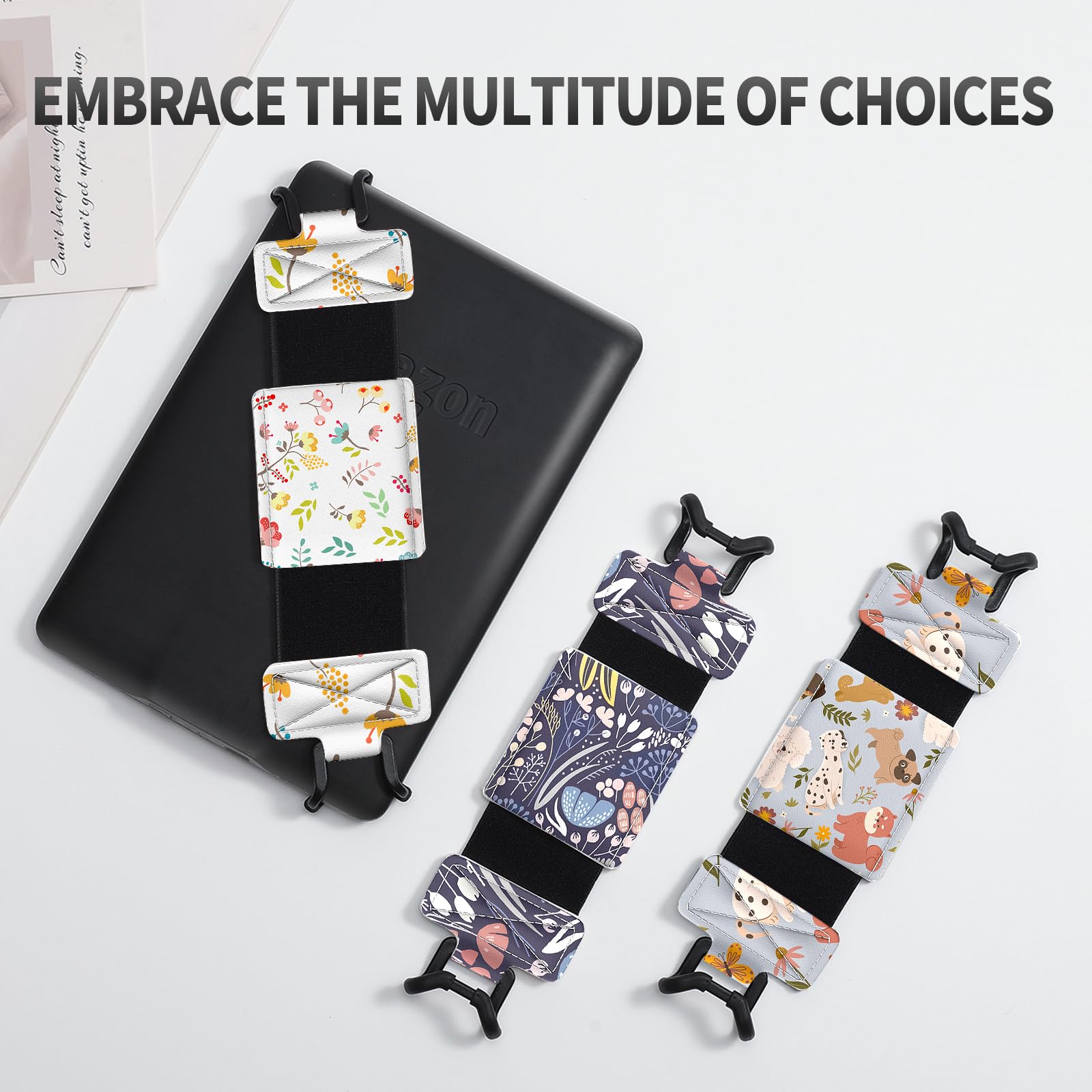 Compatibility: Universal hand strap holder with high durability and elasticity to fit 6 - 8" E-Reader and tablet, including Fire Tablet/Kindle/Kobo Nia/Kobo Clara HD/Lenovo tab M7/tab M8/Voyaga/Sony/Tolino tablet, etc. (Note: Please measure your e-book readers or tablets before purchase.)