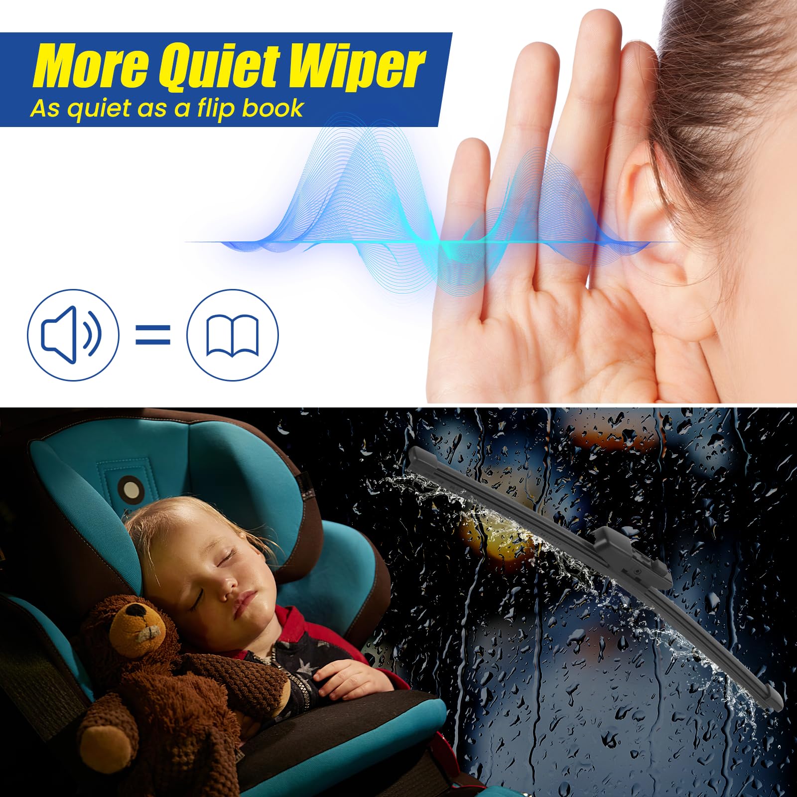 ✔️LONG LIFESPAN: These wiper blades are made from high-quality natural rubber and are highly durable. Through millions of durability tests, providing a longer service life, so you don't have to replace them frequently.