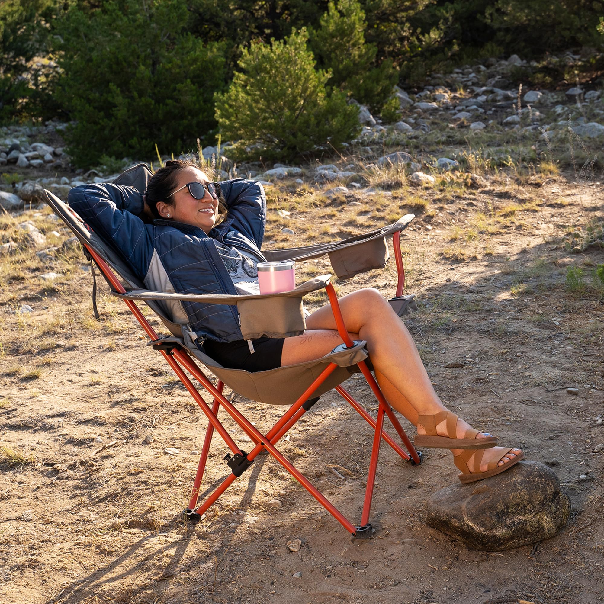 Binge watch the outdoors and chill. Made with three Recline positions, adjustable armrests and dual beverage holders - there’s no better way to recline-with-a-beverage