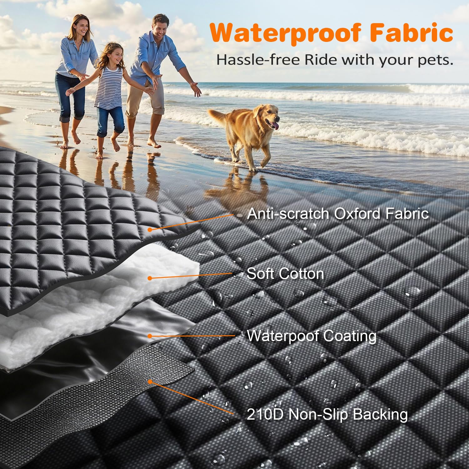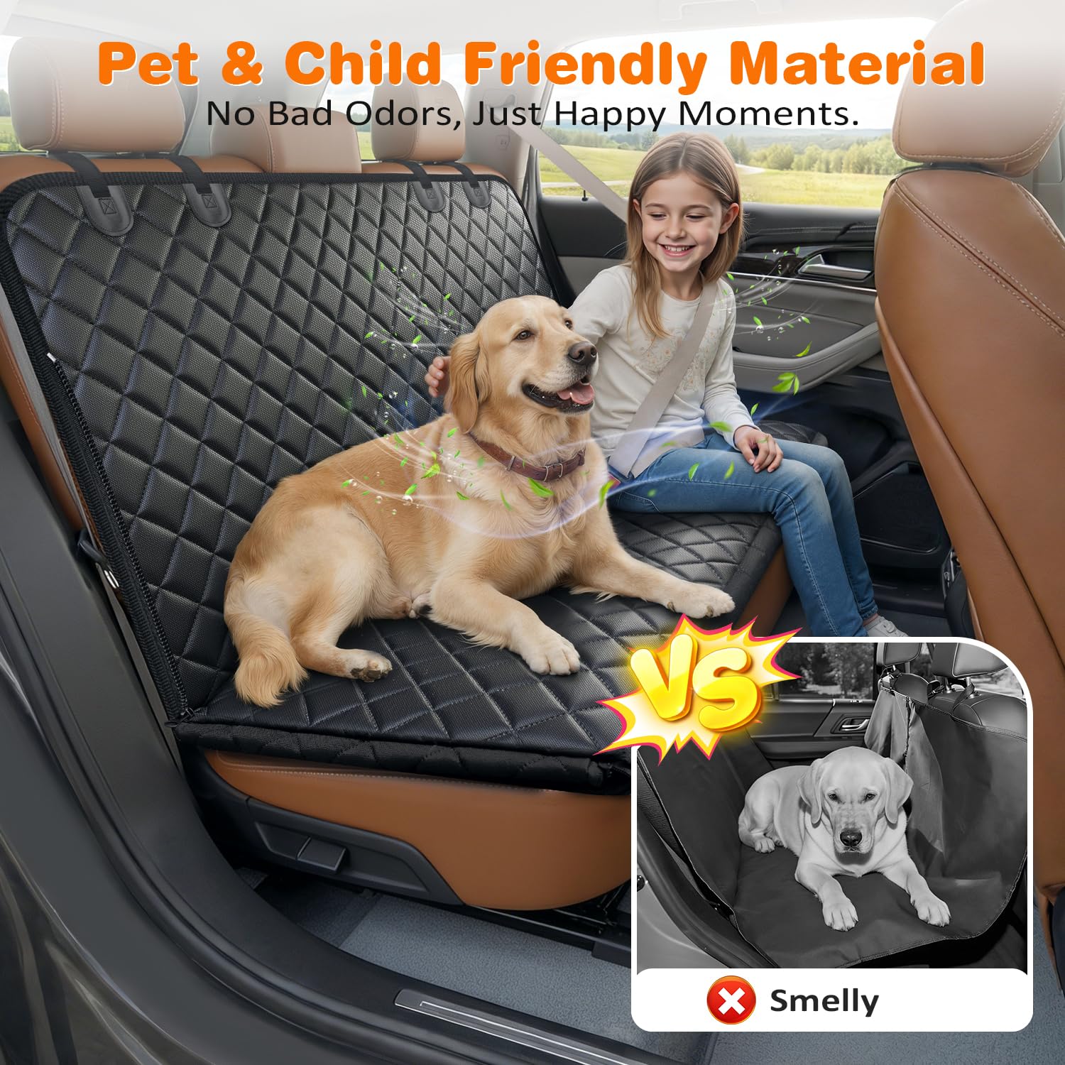 Waterproof & Easy to Use: Made of 4-layer durable materials like 600D Oxford, the dog seat cover is waterproof, and scratch-resistant to protect your car from spills, scratches, and dirt. It is easy to install or remove the dog back seat cover, and easy to clean with a damp cloth or vacuum. It's a must-have accessory for any pet owner on the go