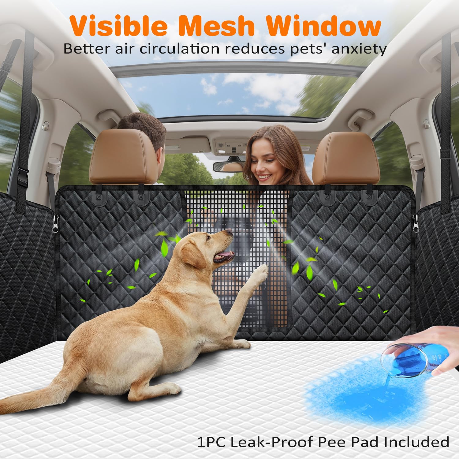 Extra Large Dog Pee Pad 55x29.5in: Shield your car seats from messy accidents! The super absorbent pet pee pad can absorb liquid faster and quickly convert urine into gel, preventing unexpected puppy accidents, vomit, muddy paws, and drool