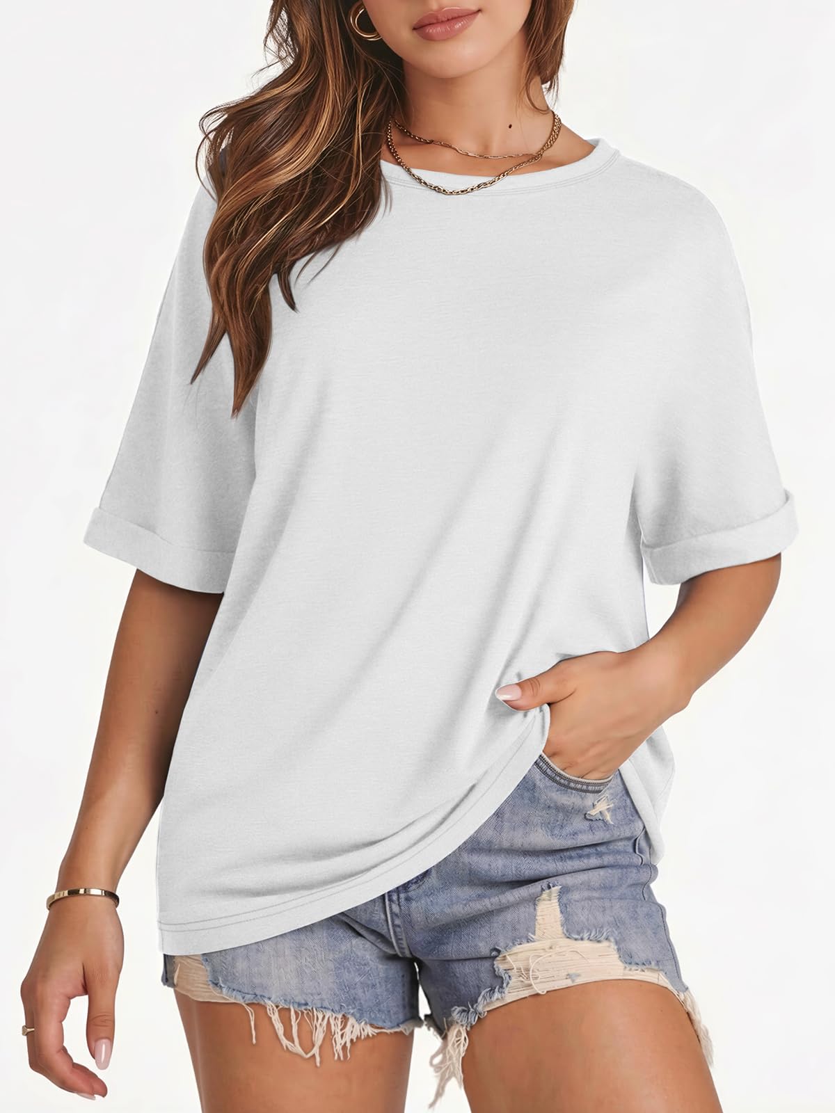 Match: The Simple Basic Tshirt is Perfect to Tuck in Front or Leave Out with Jeans, Shorts, Leggings, Pants or Skirt for a Concise Look. Also can Pair this Casual tops under a Jacket in Winter. A Must-Have Womens Tops in Your Wardrobe.