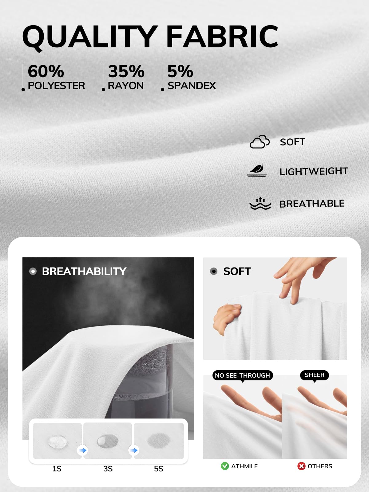 Material:60%Polyester,35%Rayon,5%Spandex. With elasticity and feeling soft.