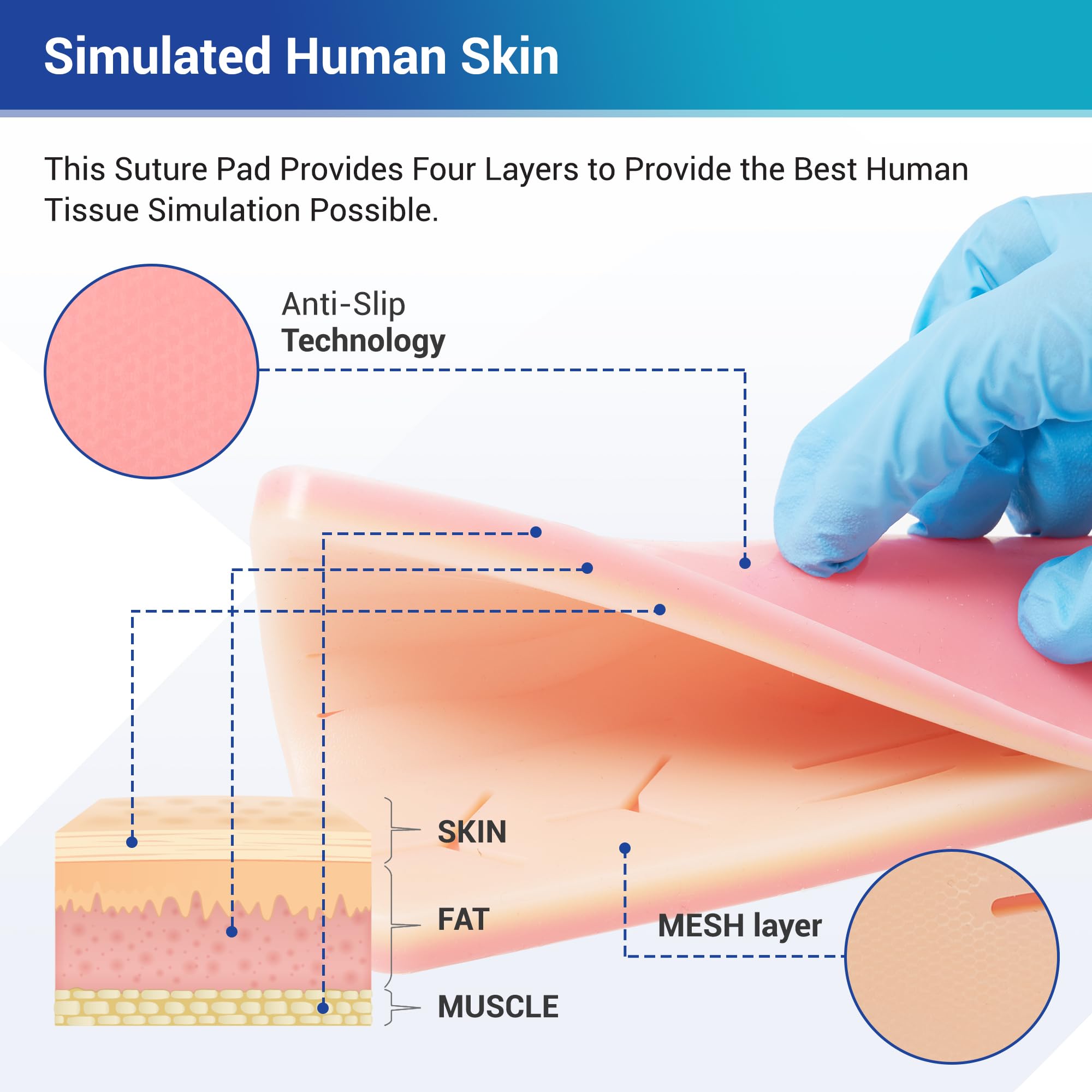 Realistic Surgical Experience - Designed with four layers—skin, mesh, fat, and muscle—this pad accurately simulates the feel and resistance of real human tissue, giving students a true surgical practice experience.