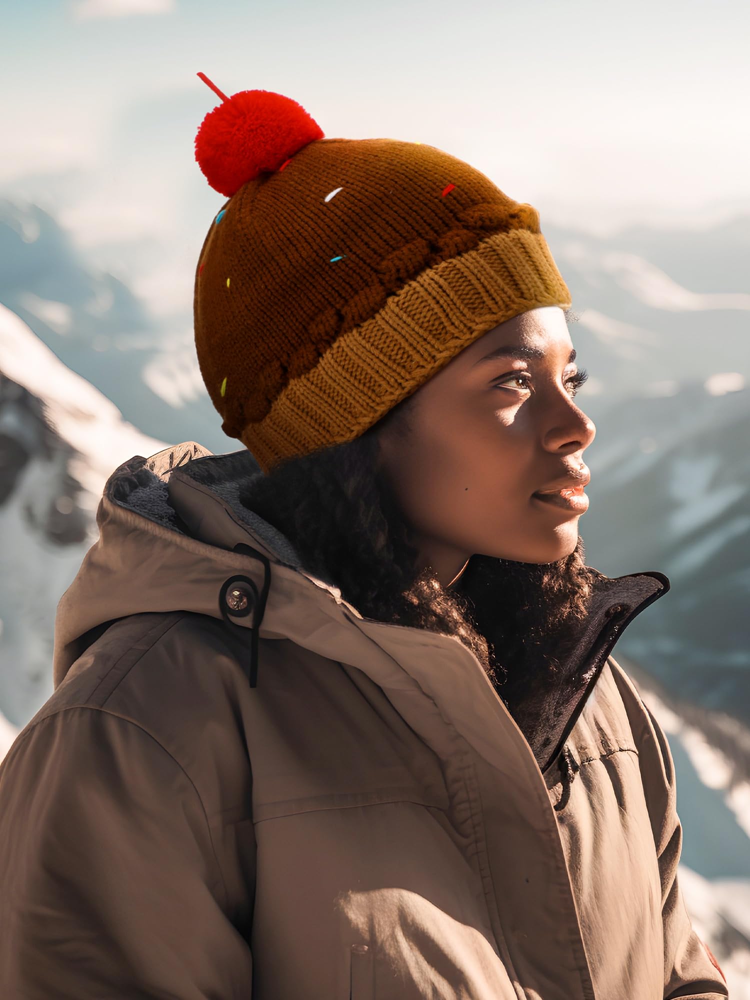 Ideal for Various Events: featuring a charming cupcake design with knitted lace, a cute pompom on the top, and colorful sugar grains, this Xmas cupcake beanie hat is a delightful hit for various situations; Be it skiing, hiking or parties