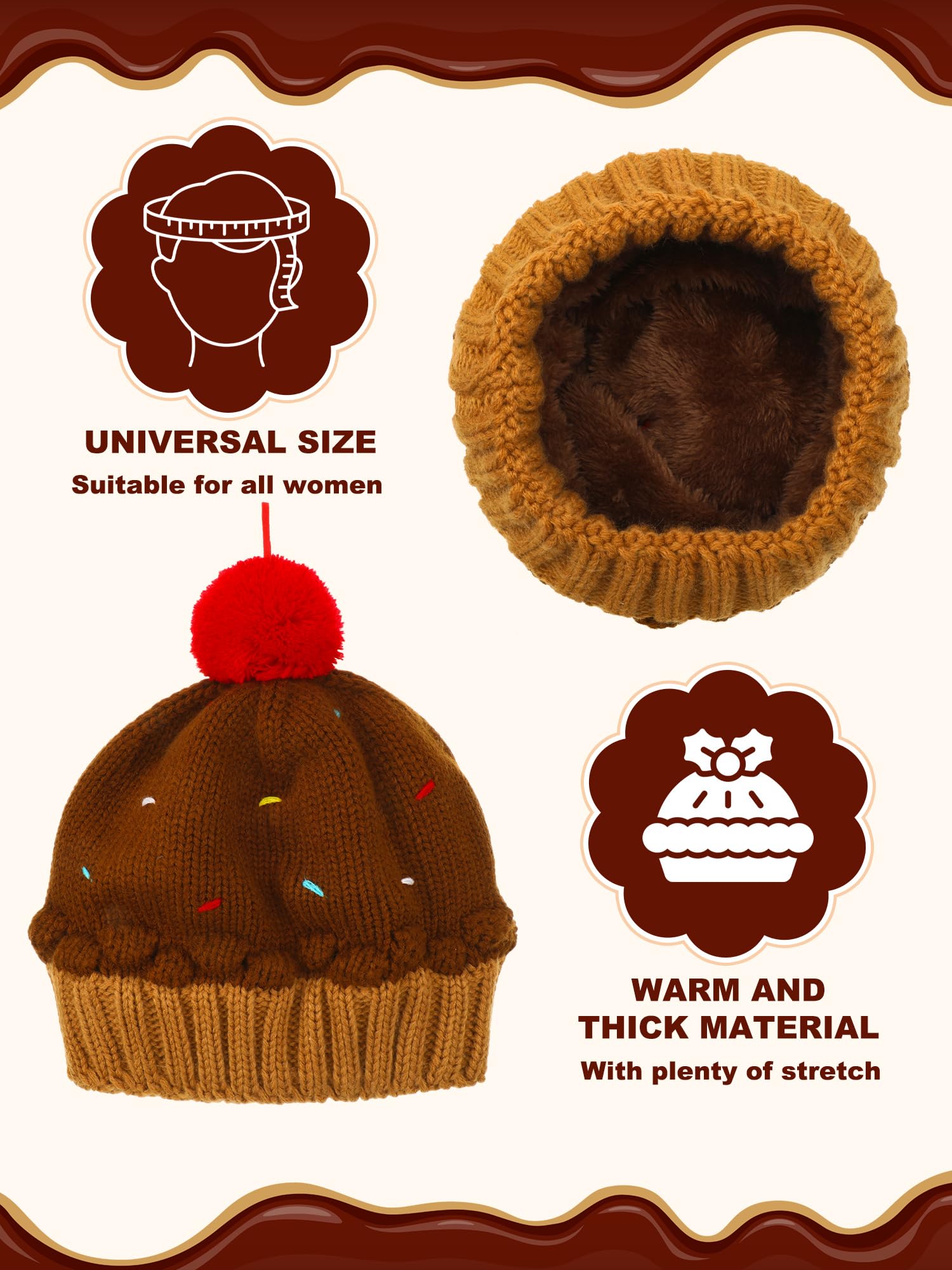 Practical and Versatile Size: ease of wear and versatility is what sets our Christmas cupcake beanie apart; Its size fits well for adults, making it a breeze to put on and take off, reducing the usual struggles of winter wear
