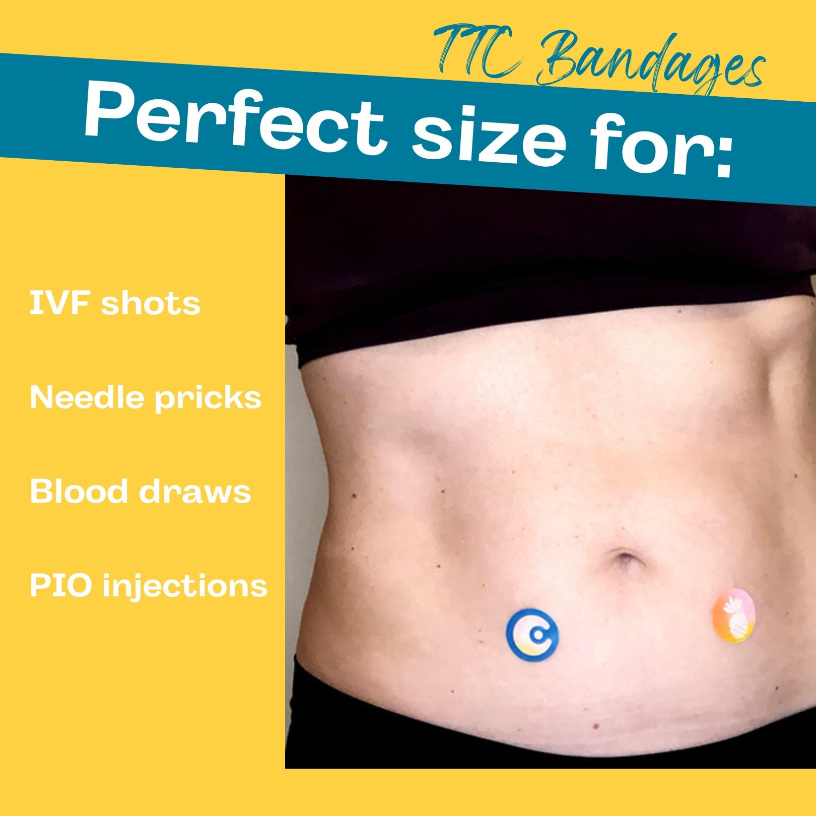 Round adhesive bandages are the perfect size for IVF shots, blood draws and needle pricks