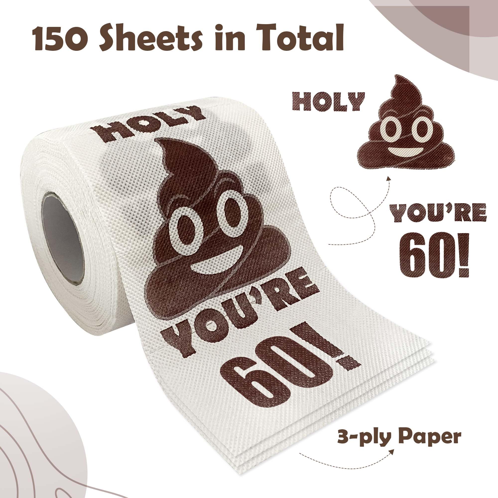 Durable & Practical: Our High-Quality funny Birthday toilet paper rolls are funny and practical! These comfy Birthday gift toilet paper gifts are great for use and super soft and absorbent! Need a laugh at the office or at home? Add to the 60th birthday turners' restroom or use it as a streamer to decorate their home, and catch their funny reaction