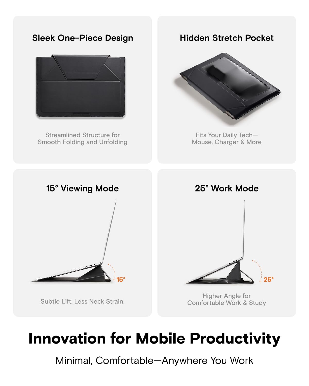 Two Angles Laptop Sleeve Stand: Instantly convert this sleek Laptop Sleeve into a sturdy Laptop Stand. Features dual-angle adjustment (15° for typing; 25° for viewing) to elevate your screen, reducing neck/wrist strain from poor posture. More than a protective Laptop Bag, this ergonomic Computer Bag works anywhere – transforming your carry sleeve into a pain-relieving workstation.