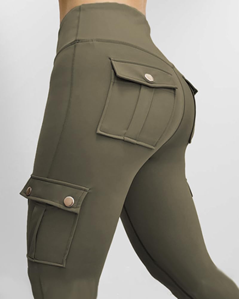 Functional Cargo Pockets: Featuring stylish and practical flap pockets design, these high waist leggings offer convenient storage for your essentials such as phone, wallet while maintaining a sleek, chic look