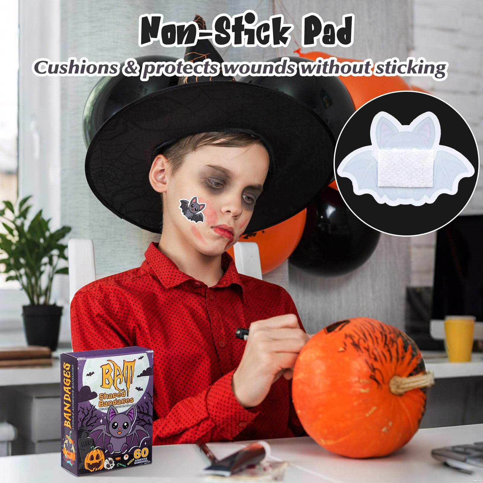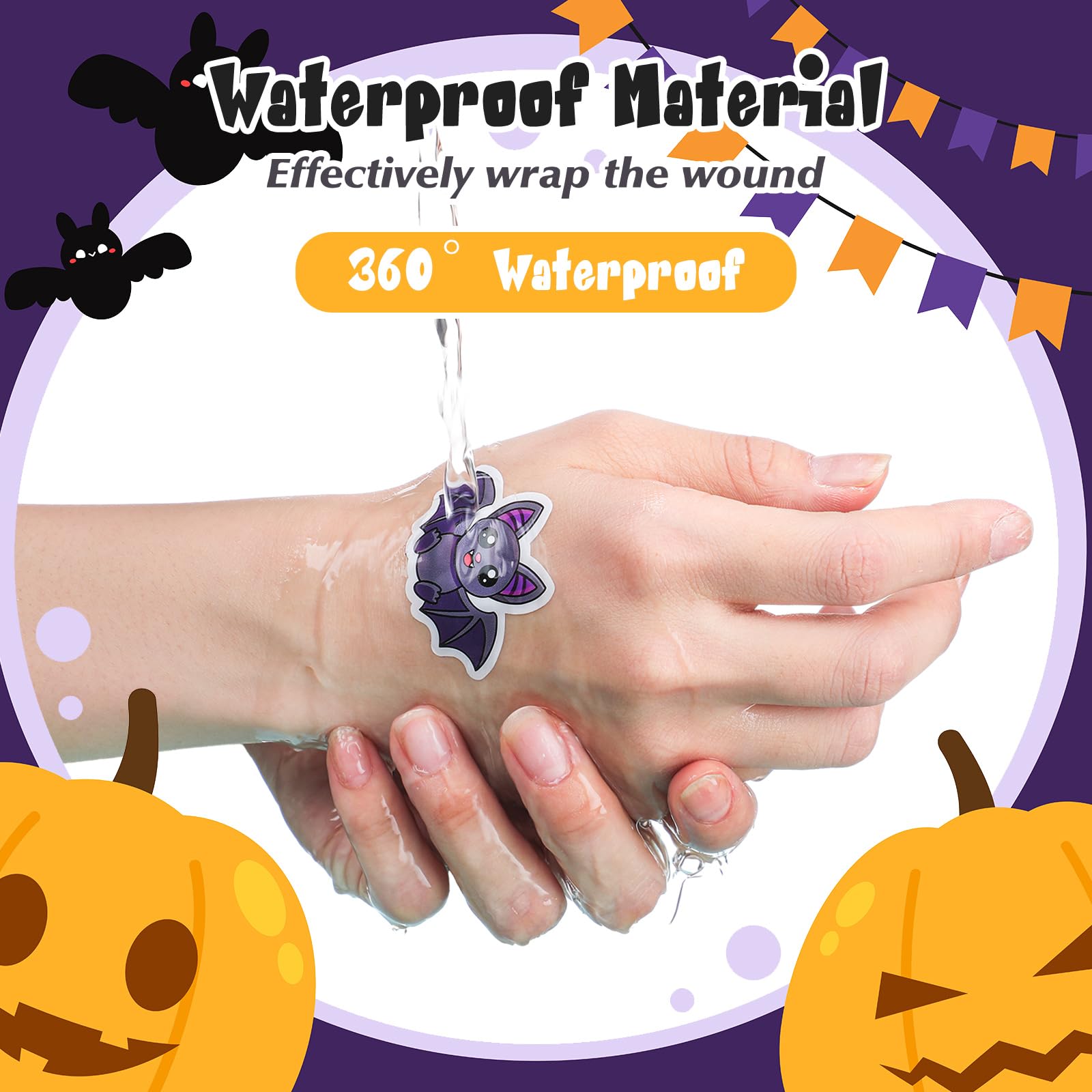 Sterile and Breathable Halloween Bandages: with Halloween bat shaped self adhesive bandages, protection goes beyond ordinary; Made from sterile, breathable and durable materials, these bat bandages ensure comfort while maintaining the wound site clean and facilitating a faster recovering process; Bandages are disposable, so change them often