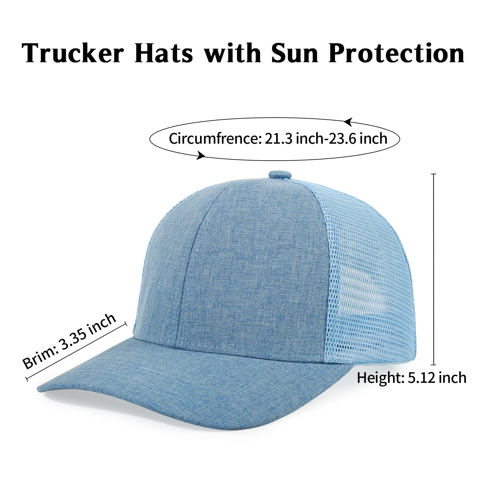 Premium Material: Our mesh trucker caps are made of 100% high-quality cotton fabric.The plain baseball caps can protect the sensitive scalp from UV damage. The material is soft, easy to pack and compress.