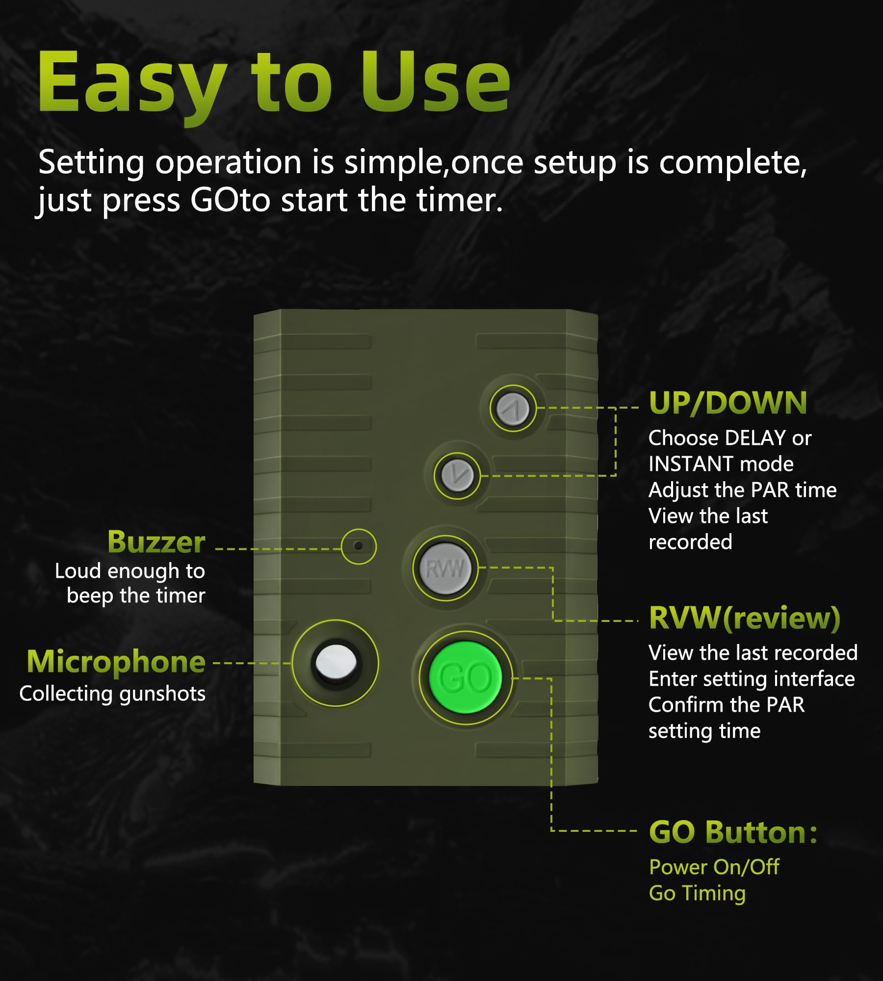 4 Versatile Timing Modes: Choose from 4 timing modes - Instant, Delay, Par+ Instant, Par+ Delay. Used in a variety of shooting training settings, giving you the ability to tailor the timer to your shooting needs