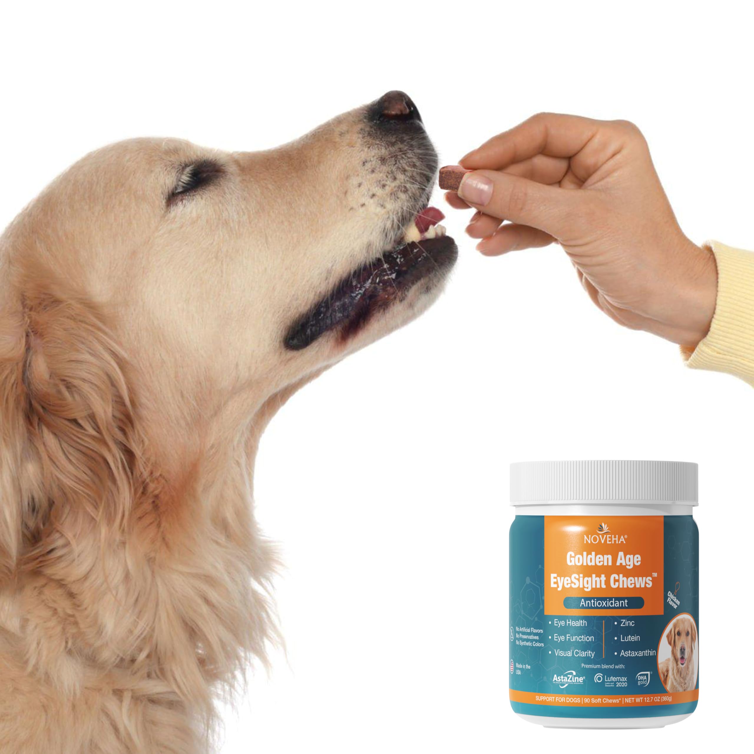 YOUR PET'S JOURNEY TO CLEARER EYESIGHT BEGINS HERE: NOVEHA Golden Age Eyesight Chews offers your pet to explore the world with newfound clarity and wonder. Don't wait – take a step toward brighter days.