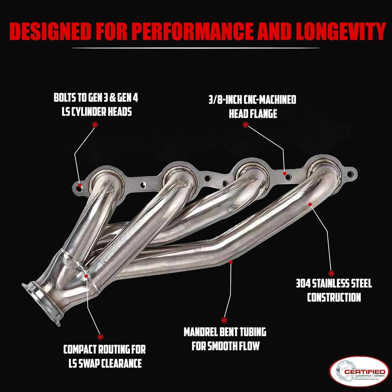 304 STAINLESS STEEL CONSTRUCTION: Built from 304 stainless steel with CNC cut flanges and TIG welded seams for durability, corrosion resistance and long term reliability in custom LS swap builds.