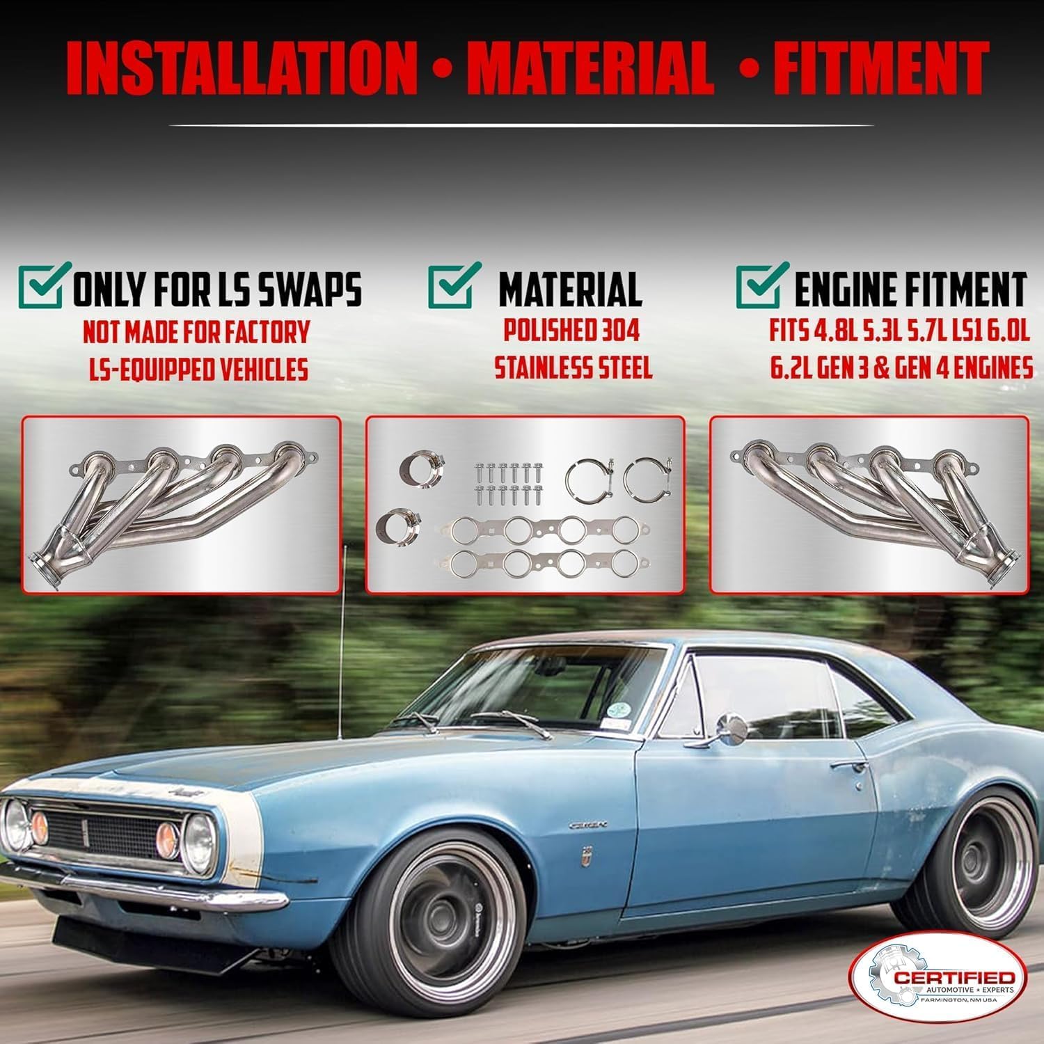 SWAP ONLY APPLICATION: Designed specifically for LS engine swap conversions. Not compatible with 1999 and newer factory equipped GM trucks and SUVs and not a direct bolt on replacement for factory exhaust systems.
