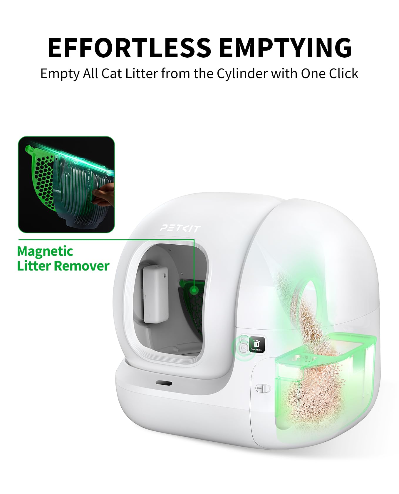Dump Cat Litter Effectively: No longer requires removing the entire cylinder to dump the cat litter, just one click to empty approx 90% of the cat litter