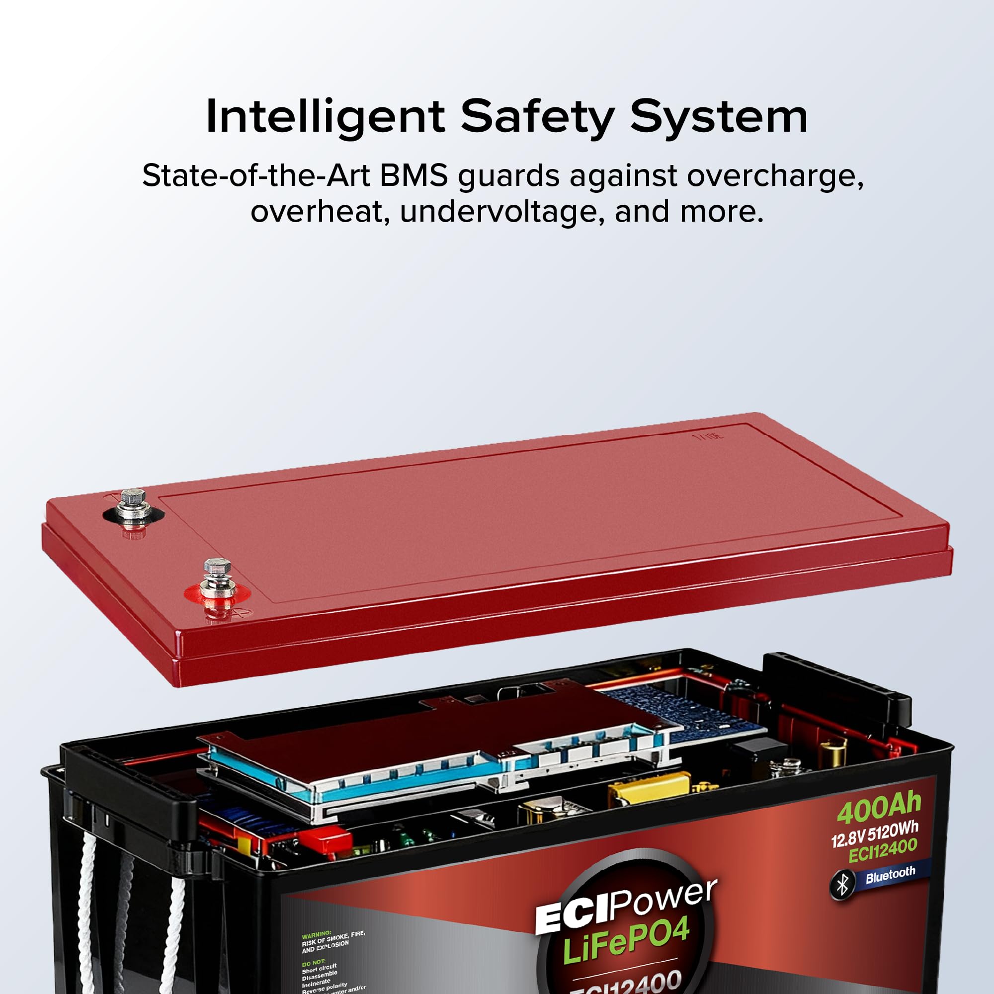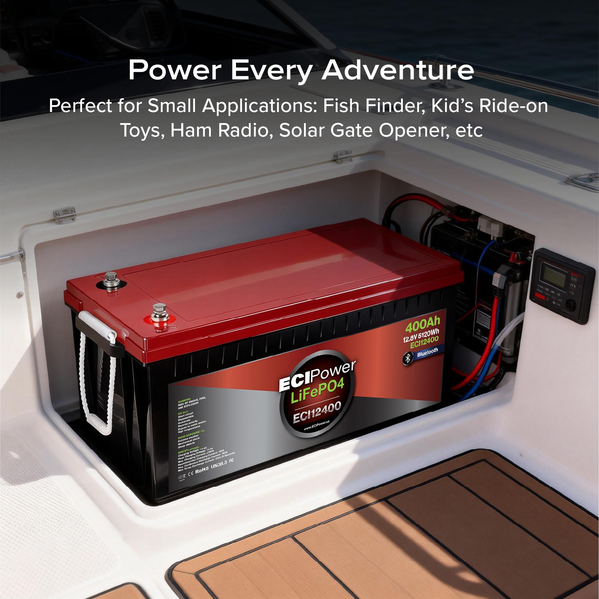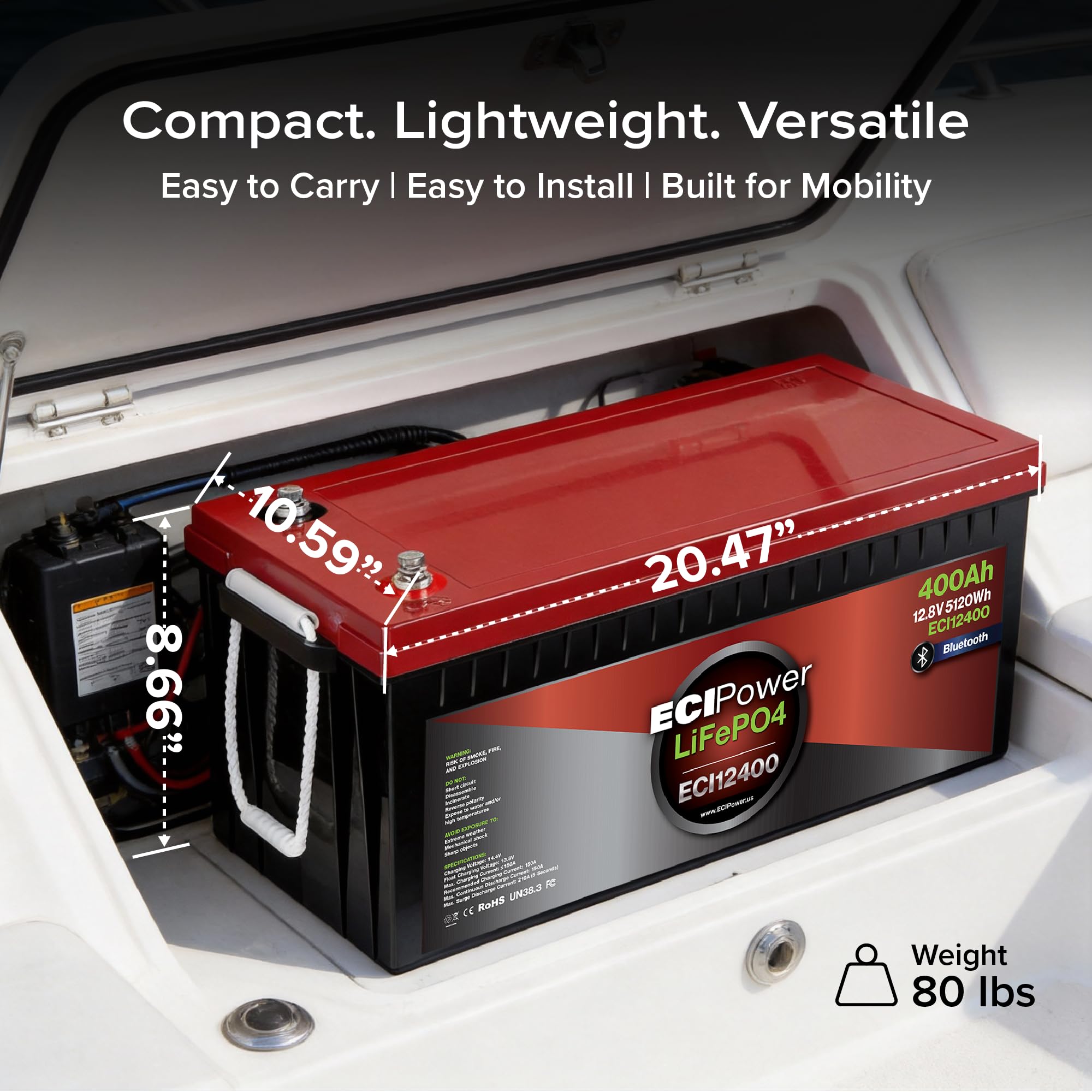 ECI Power 12V 400Ah Lithium LiFePO4 Deep Cycle Rechargeable Battery | 2000-5000 Life Cycles & 10-Year Lifetime | Built-in BMS | Perfect for RV, Solar, Marine, Overland, Off-Grid Applications