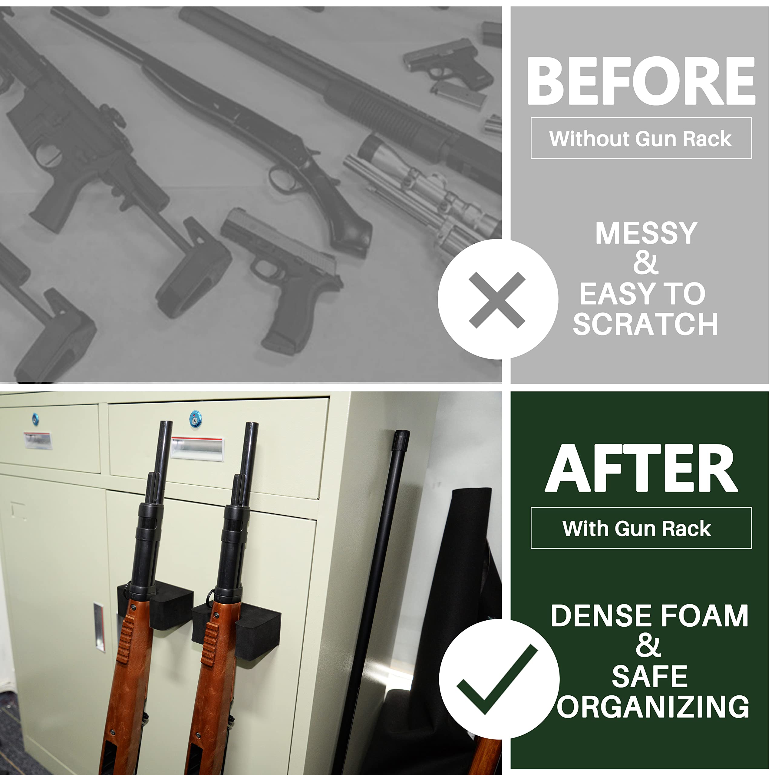 🌟Firm Foam Gun Rack: The foam racks are dense and stiff enough to give good support, but yet soft enough not to damage your firearms. It has extremely low water and oil absorption. Perfect for indoor and outdoor use.